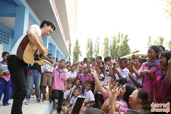 ไม่จบเพียงแค่นั้น เพราะหนุ่มเป้ใจดีคว้ากีต้าร์ขอแถมอีกหนึ่งเพลง งานนี้ร้องกันสดๆ เล่นกันสดๆ ในห้องสมุดกันไปเลย เรียกเสียงฮือฮาและเสียงปรบมือจากน้องๆ นักเรียนกันเกรียวกราวทีเดียว สุดท้ายทางทีมงาน เป้ อารักษ์ และน้องๆ โรงเรียนวัดเทพนิมิตร จังหวัดภูเก็ต ได้ถ่ายภาพร่วมกันเพื่อเก็บเป็นความทรงจำดีๆ ที่ทั้งสนุก เฮฮา และได้สาระความรู้พร้อมแรงบันดาลใจมากมาย