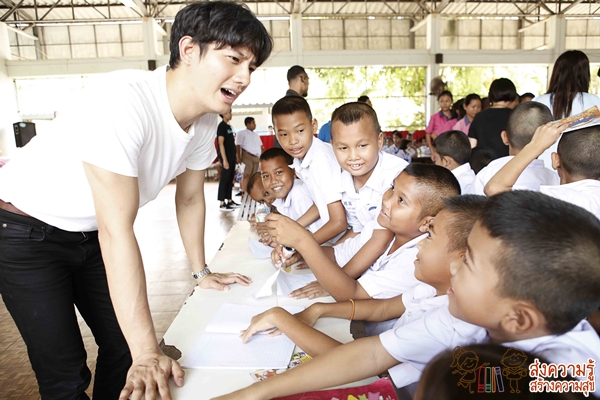 เมื่อเดินมาถึงห้องสมุดน้องๆ ที่นั่งรออยู่ในห้องต่างพากันตื่นเต้น ขอเก็บภาพหนุ่มเป้เป็นที่ระลึกกันไปหลายช็อต จากนั้นก็เริ่มเข้าสู่ช่วงพูดคุยถึงแรงบันดาลใจในการอ่านหนังสือ ซึ่งใครจะไปรู้ว่าหนุ่มเป้ ที่ภายนอกดูเป็นหนุ่มเซอร์ นิสัยติสท์ จริงๆ แล้วเขารักการอ่านหนังสือมาตั้งแต่เด็กๆ โดยเฉพาะหนังสือนิยายที่สามารถหาอ่านได้ในห้องสมุดอย่างเรื่อง แฮรี่ พอตเตอร์ ที่หนุ่มเป้มักจะแข่งกันอ่านกับเพื่อนจนเกิดเป็นความรู้สึกสนุกกับการอ่านหนังสือ ถึงขั้นยกให้เพื่อนเป็นแรงบันดาลใจในการอ่าน