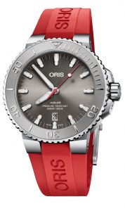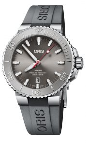 นาฬิการุ่น Oris Aquis Date Relief ได้แรงบันดาลใจจากสีและความรู้สึกที่มีต่อน้ำ หน้าปัดสีเทาที่ทำให้นึกถึงสีของทะเลยามมีพายุ ในขณะที่มาตรเวลาแบบนูนบนวงแหวนขอบหน้าปัดสำหรับนักประดาน้ำซึ่งเป็นเอกลักษณ์เฉพาะตัว ชวนให้ระลึกถึงพื้นผิวของน้ำ ซึ่งเป็นเสมือนปัจจัยสำคัญพื้นฐานในทุกชีวิต