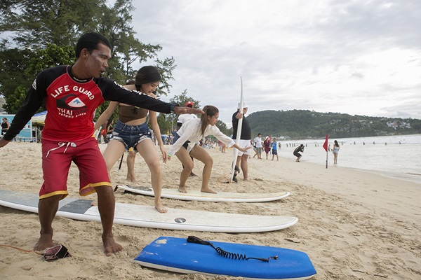 ที่หาดป่าตองตลอดทั้งชายหาดจะมี Surfboard ให้เช่า และมีบริการพร้อมสอนไปในตัว