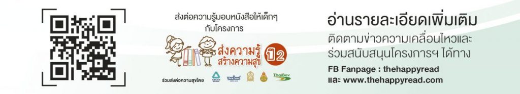 บทความนี้เป็นส่วนหนึ่งในโครงการ “ส่งความรู้สร้างความสุข” เป็นอีกหนึ่งโครงการดี ๆ ของความร่วมมือระหว่าง บริษัท อมรินทร์พริ้นติ้งแอนด์พับลิชชิ่ง จำกัด (มหาชน) และ บริษัท ไทยเบฟเวอเรจ จำกัด รวมไปถึงหน่วยมหาชนงานภาครัฐ คือ กระทรวงศึกษาธิการ และ สำนักงานคณะกรรมการการศึกษาขั้นพื้นฐานที่เล็งเห็นความสำคัญของการอ่าน เพราะการอ่านถือเป็นรากฐานที่สำคัญของการเรียนรู้และการพัฒนาทักษะของเด็กและเยาวชน