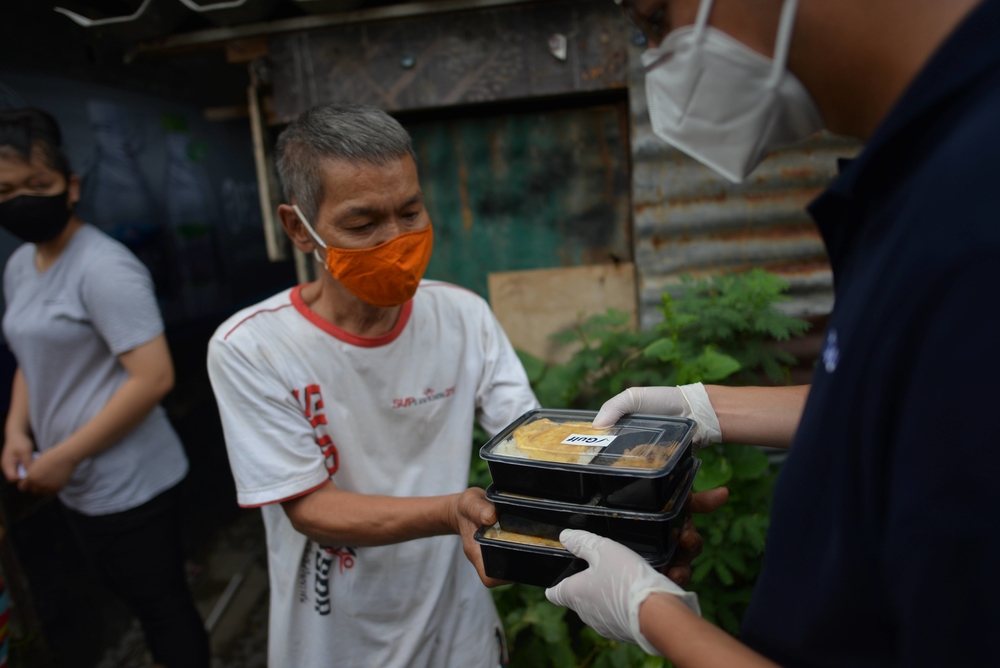 นายสิตมน รัตนาวะดี (ที่ 4 จากซ้าย) ในนามตัวแทนของนายสารัชถ์ รัตนาวะดี ประธานเจ้าหน้าที่บริหาร บริษัท กัลฟ์ เอ็นเนอร์จี ดีเวลลอปเมนท์ จำกัด (มหาชน) ร่วมด้วย โปรโม โมรียา จุฑานุกาล (ที่ 5 จากซ้าย) โปรเม เอรียา จุฑานุกาล (ที่ 2 จากซ้าย) และนายชัชชาติ สิทธิพันธุ์ (ที่ 3 จากซ้าย) ลุยแจกข้าวกล่องในพื้นที่ชุมชนเฉลิมอนุสรณ์ และชุมชนมาชิม เขตวัฒนา เพื่อช่วยเหลือและบรรเทาความลำบากของชาวบ้านที่ได้รับความเดือดร้อนจากการแพร่ระบาดของโควิด-19