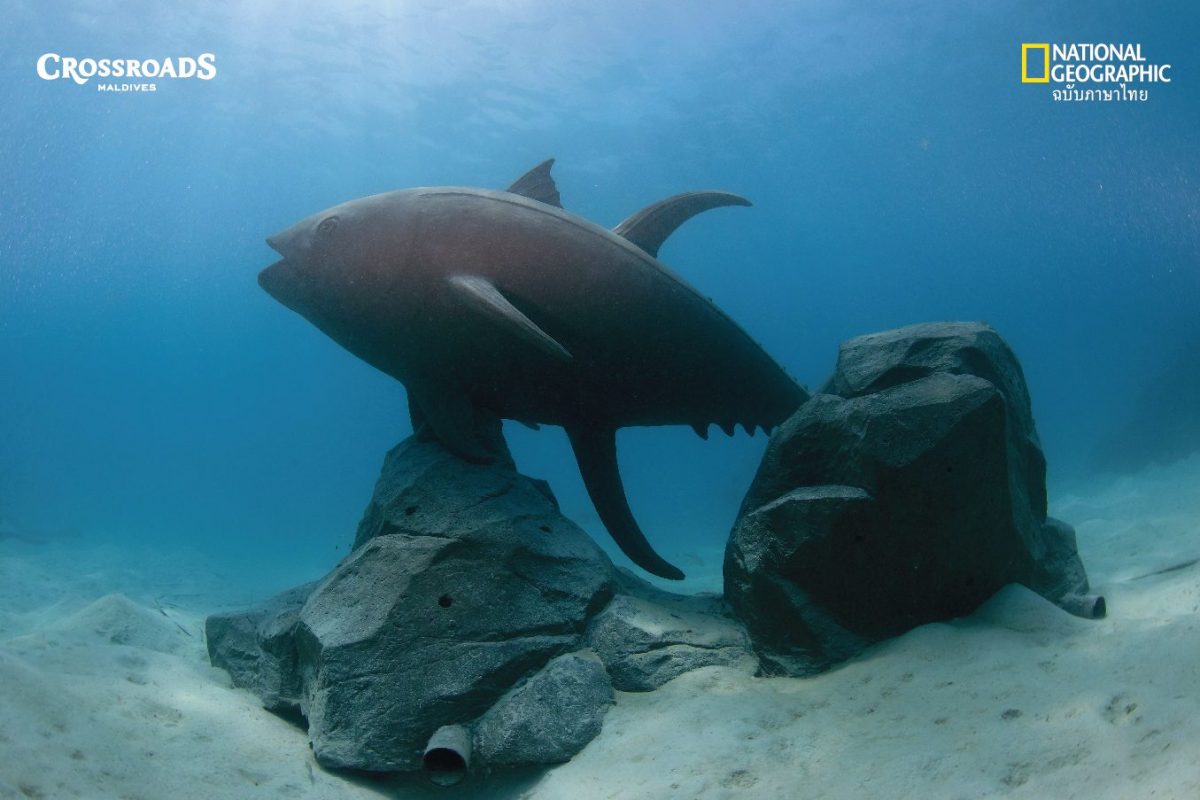 2. “Tuna Sculptures” ประติมากรรมใต้ทะเลที่อยู่ลึกเพียง 6 เมตร อยู่ในบริเวณลากูน ตรงกลาง ใกล้ ๆ กับห้องพักของโรงแรม SAii Lagoon Maldives และโรงแรม Hard Rock Hotel Maldives (ชมภาพห้องพักเพิ่มเติมได้ที่นี่) จุดดำน้ำนี้จึงเป็นจุดที่ปลอดภัยและสะดวกสำหรับการฝึกทักษะการดำน้ำโดยไม่ไปรบกวนระบบนิเวศ เหมาะสำหรับผู้ที่มาเรียนดำน้ำทั้ง Scuba และ Freedive เพราะนอกจากประติมากรรมที่ใช้ฝึกเป็นเป้าสายตาแล้ว ยังมีดอกไม้ทะเลและฝูงปลาการ์ตูนมัลดีฟส์ให้ชื่นชมด้วย จะมีที่ไหนน่าฝึกดำน้ำเท่ากับน้ำใส ๆ ของที่นี่