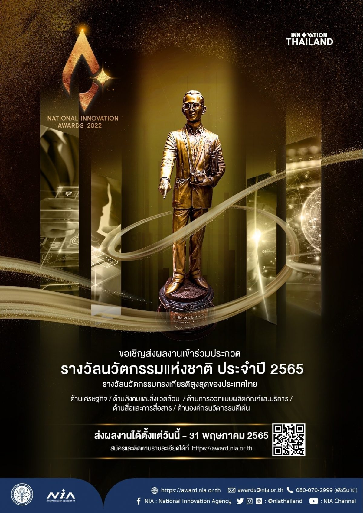 เชิญร่วมประกวด “รางวัลนวัตกรรมแห่งชาติ ประจำปี 2565” โดย NIA ส่งผลงานได้ตั้งแต่วันนี้ – 31 พฤษภาคม