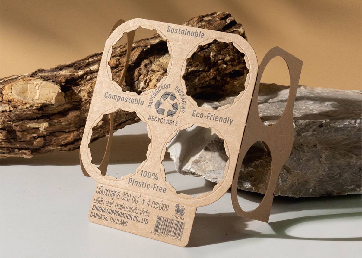 “สิงห์” เปิดตัวบรรจุภัณฑ์เพื่อความยั่งยืน “Singha Sustainable Pack” เปลี่ยนจากพลาสติกมาใช้กระดาษที่ย่อยสลายได้ 100% เป็นมิตรต่อสิ่งแวดล้อม ครั้งแรกของเอเชีย อีกทั้งใช้หมึกพิมพ์จากถั่วเหลือง ที่ไม่เป็นอันตรายต่อสัตว์ พร้อมตอกย้ำแบรนด์ที่มีความรับผิดชอบต่อสังคมและใส่ใจสิ่งแวดล้อม