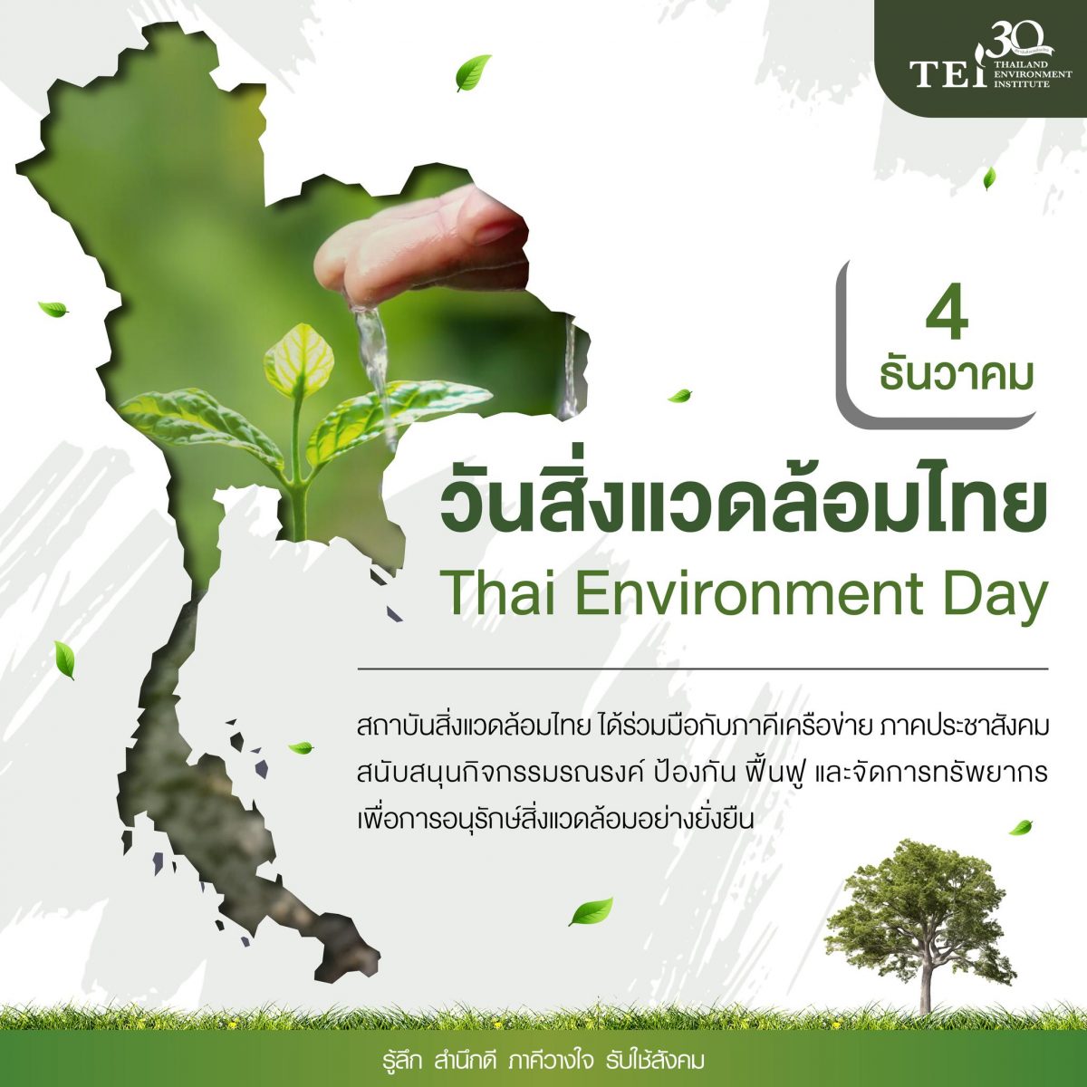 ดังนั้นวันที่ 4 ธันวาคมของทุกปี นับว่าเป็นวันที่กระตุ้นเตือนให้คนไทยตระหนักและเห็นความสำคัญของสิ่งแวดล้อม เพราะทราบกันดีอยู่แล้วว่าปัญหาสิ่งแวดล้อมของประเทศไทยและของโลก ได้ทวีมีความรุนแรงมากขึ้น เพราะที่ผ่านมาเราใช้ทรัพยากรที่มีอยู่จำกัด ไปอย่างสิ้นเปลื้อง ส่งผลให้ทรัพยากรเสื่อมโทรมและหมดไปอย่างรวดเร็ว ตลอดจนเกิดปัญหามลพิษที่รุนแรงส่งผลกระทบต่อคุณภาพชีวิตอย่างต่อเนื่อง