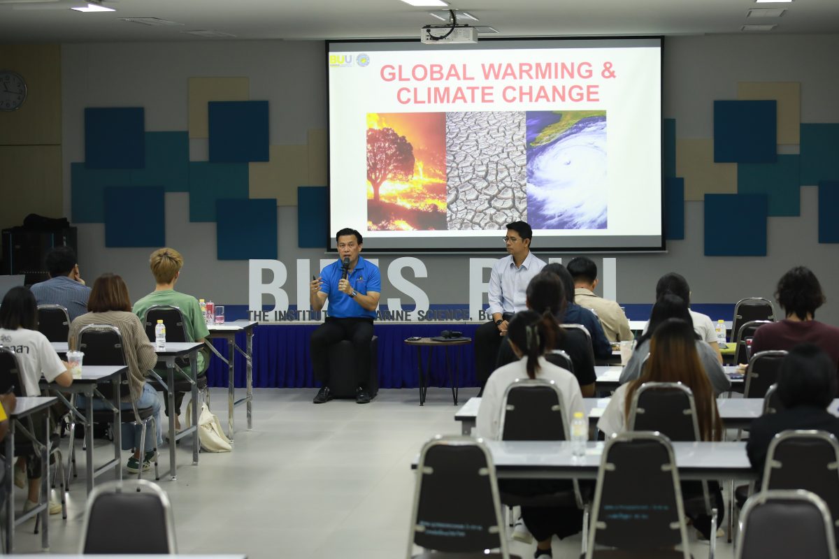 สถาบันวิทยาศาสตร์ทางทะเล มหาวิทยาลัยบูรพา จึงได้จัดวงเสวนาพูดคุยในหัวข้อ “สถานการณ์ภาวะโลกเดือด ความท้าทาย ผลกระทบ และแนวทางการแก้ปัญหาในประเทศไทย” โดย ดร.บัลลังก์ เนื่องแสง ผู้อำนวยการสถาบันวิทยาศาสตร์ทางทะเล มหาวิทยาลัยบูรพา และ ดร.สราวุธ ศิริวงศ์ คณบดีคณะเทคโนโลยีทางทะเล มหาวิทยาลัยบูรพา วิทยาเขตจันทบุรี เป็นผู้นำในการเสวนา ณ สถาบันวิทยาศาสตร์ทางทะเล มหาวิทยาลัยบูรพา