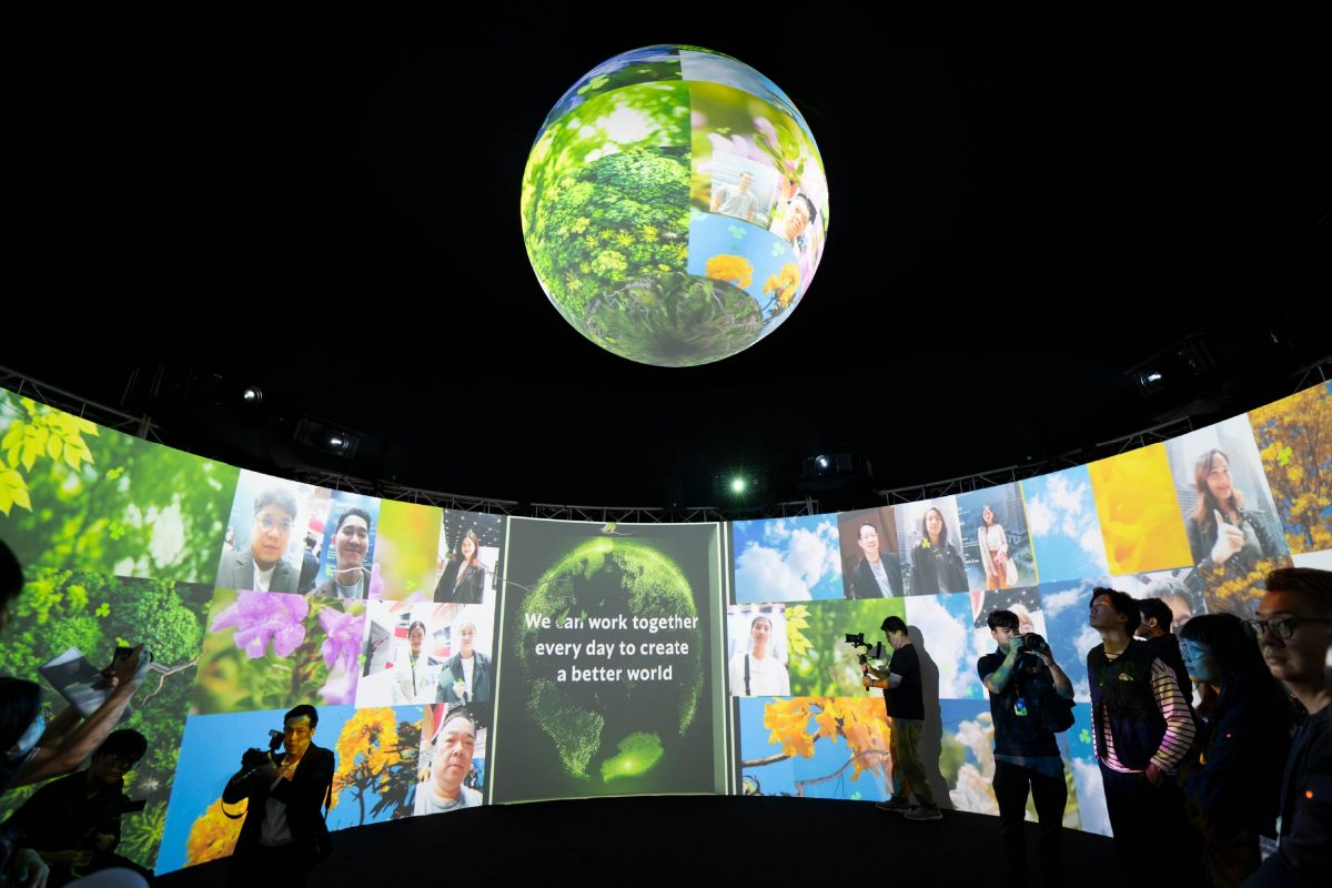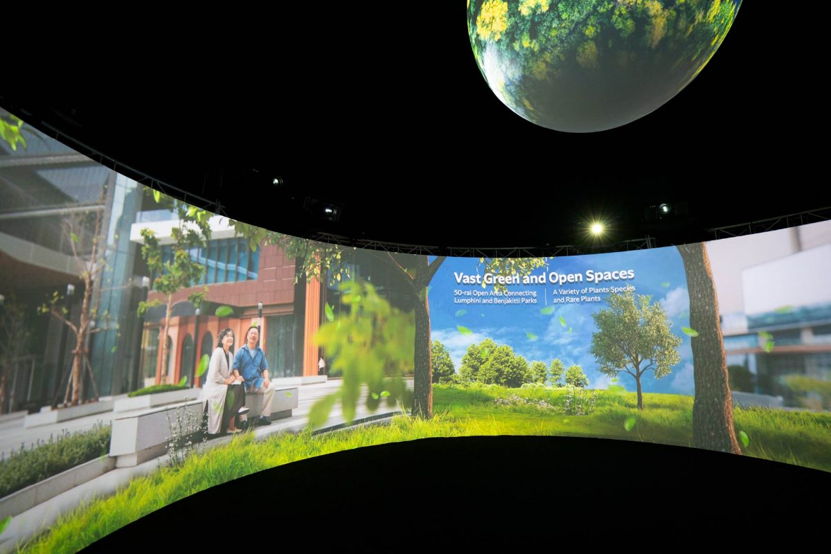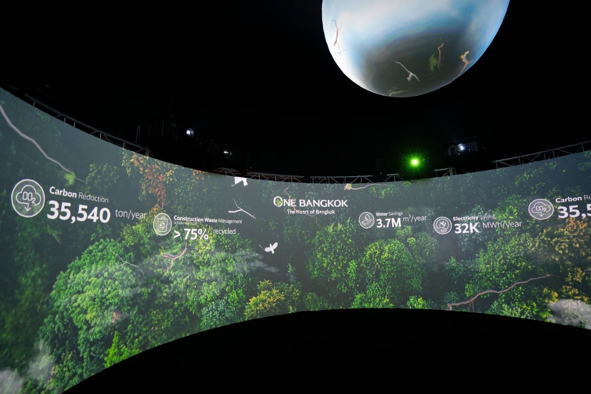 นิทรรศการ One Bangkok Experiential Pavilion ใช้เทคนิค 360 degree Projection Mapping Theatre นำเสนอแนวคิด Better Quality of Life in One Bangkok มุ่งมั่นยกระดับคุณภาพชีวิตแบบองค์รวมด้วยองค์ประกอบต่าง ๆ ภายในโครงการที่ครอบคลุมใน 3 มิติ