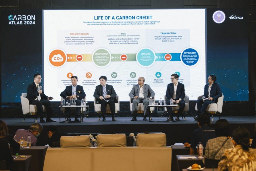 โดยในงานสัมมนาดังกล่าว เป็นการเปิดเวทีให้กับหน่วยงานภาครัฐ ภาคเอกชน ภาคการศึกษา และองค์กรไม่แสวงหากำไร เช่น กรมการเปลี่ยนแปลงสภาพภูมิอากาศและสิ่งแวดล้อม, องค์การบริหารจัดการก๊าซเรือนกระจก (องค์การมหาชน), กรมป่าไม้, สำนักงานนโยบายและแผนทรัพยากรธรรมชาติและสิ่งแวดล้อม, และมูลนิธิแม่ฟ้าหลวง ในพระบรมราชูปถัมภ์ ได้เข้ามาร่วมแลกเปลี่ยนองค์ความรู้ด้านการบริหารจัดการก๊าซเรือนกระจก การประเมินการกักเก็บและปลดปล่อยคาร์บอน และนำเสนอแพลตฟอร์มดิจิทัลการติดตาม รายงาน และตรวจสอบคาร์บอน (Carbon Atlas Platform) ด้วยเทคโนโลยีดาวเทียม