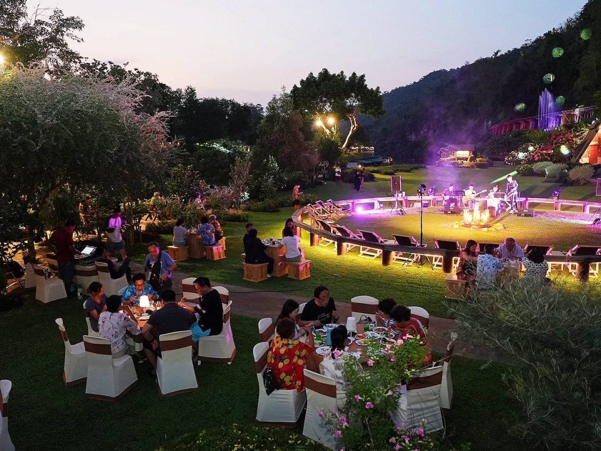 พาเยือนแลนด์มาร์กสำคัญ “สะพานข้ามแม่น้ำแคว” และเส้นทางรถไฟสายมรณะ พักผ่อนที่ “สวนไทรโยค รีสอร์ท” ที่โดดเด่นด้วยบรรยากาศริมน้ำแควน้อย และวิวทางรถไฟสายมรณะ พร้อมร่วมผจญภัยเหนือสายน้ำกับกิจกรรมแอดเวนเจอร์ “ล่องแพเปียก” ในลำน้ำแควน้อย พร้อมเพลิดเพลินกิจกรรมสันทนาการที่สนุกสนาน พร้อมเสียงเพลงทรีโอยามค่ำคืน พบกับวง PM BAND ขับกล่อมในบรรยากาศดนตรีในสวนสุดเอ็กซ์คูลซีฟ