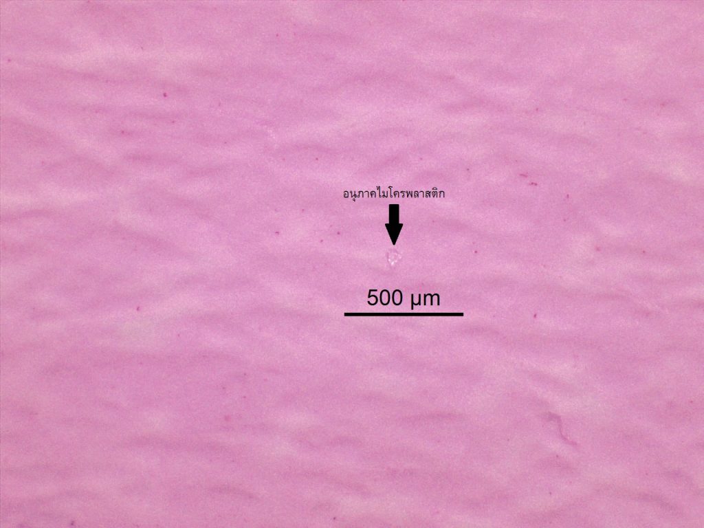 “เมื่อไม่นานมานี้ นักวิทยาศาสตร์จากหลายประเทศให้ความสนใจเรื่องไมโครพลาสติกในน้ำดื่มกันอย่างมาก จากการสำรวจในสหรัฐอเมริกาพบว่า น้ำดื่มบรรจุขวดจำนวน 250 ตัวอย่างจาก 11 ยี่ห้อ ที่มีจำหน่ายใน 9 ประเทศ ปนเปื้อนไมโครพลาสติกร้อยละ 93 โดยมีค่าเฉลี่ยเฉลี่ย 11 อนุภาคต่อน้ำ 1 ลิตร” ดร.สมชาย ตันชรากรณ์ หัวหน้าทีมวิจัยเรื่องไมโคตรพลาสติกของสถาบันวิจัยแสงซินโคตรตรอน กล่าวและเสริมว่า “สำหรับประเทศไทย ทางทีมวิจัยของสถาบันฯ ได้สุ่มตัวอย่างน้ำดื่มบรรจุขวดที่มีขายอยู่ทั่วไปจำนวน 24 ตัวอย่างจาก 12 ยี่ห้อ และวิเคราะห์ด้วยเทคนิคกล้องจุลทรรศน์อินฟราเรด พบว่า มีไมโครพลาสติกปนเปื้อนร้อยละ 41 มีค่าเฉลี่ย 2 อนุภาคต่อน้ำ 1 ลิตร ซึ่งถือว่ามีปริมาณน้อยมาก และเชื่อถือได้ว่าปลอดภัยต่อการบริโภค”