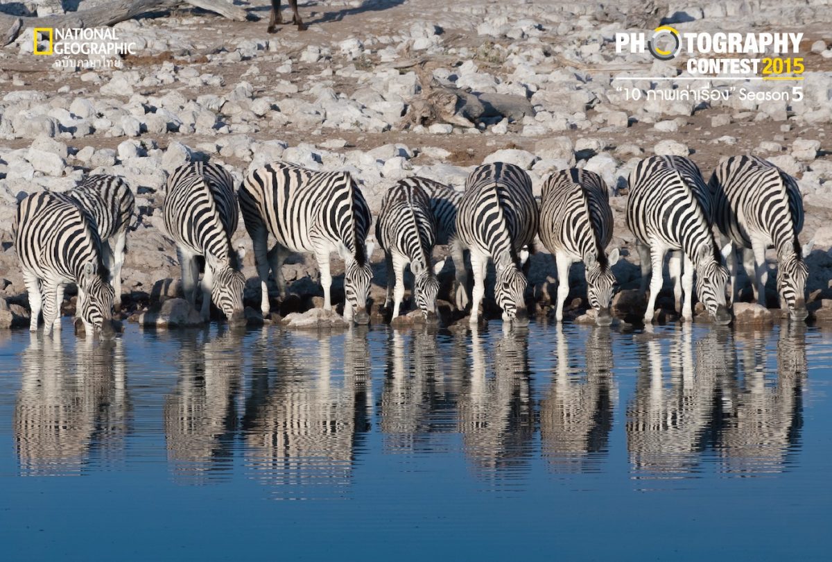 เมื่อพื้นที่จำกัดการเผชิญหน้ากันย่อมไม่อาจหลีกเลี่ยง ม้าลายลงดื่มนํ้าพร้อม ๆ กันทั้งฝูง พวกมันใช้เวลาและค่อย ๆ เดินเข้าสู่แอ่งนํ้าอย่างระมัดระวัง