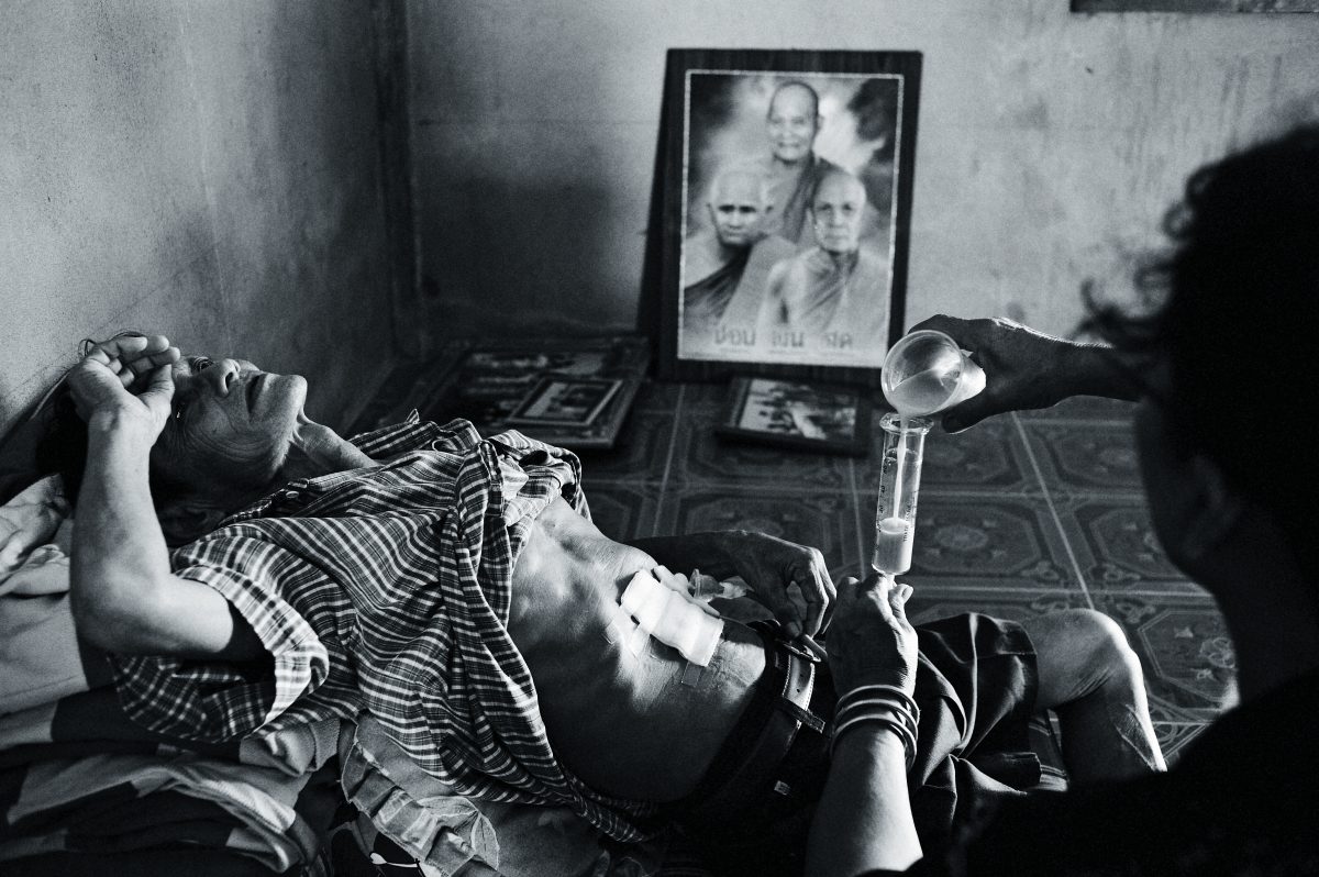 เสียงนกเอี้ยงร้องเจื้อยแจ้วอยู่บนต้นไทรหน้าบ้าน แข่งกับเสียงไอยาวต่อเนื่องที่ดังแว่วอยู่เบื้องล่าง ร่างกายของชาย ผอมบางนั่งอยู่ในเปล คงมีเพียงรองเท้าแตะคู่เก่ากับกางเกงขาสั้นเป็นอาภรณ์คลุมกาย สายยางเล็กๆ ความยาวราว 6 นิ้วงอกออกมาจากหน้าท้อง โดยมีผ้ากอซสีขาวพันอยู่รอบโคนสาย