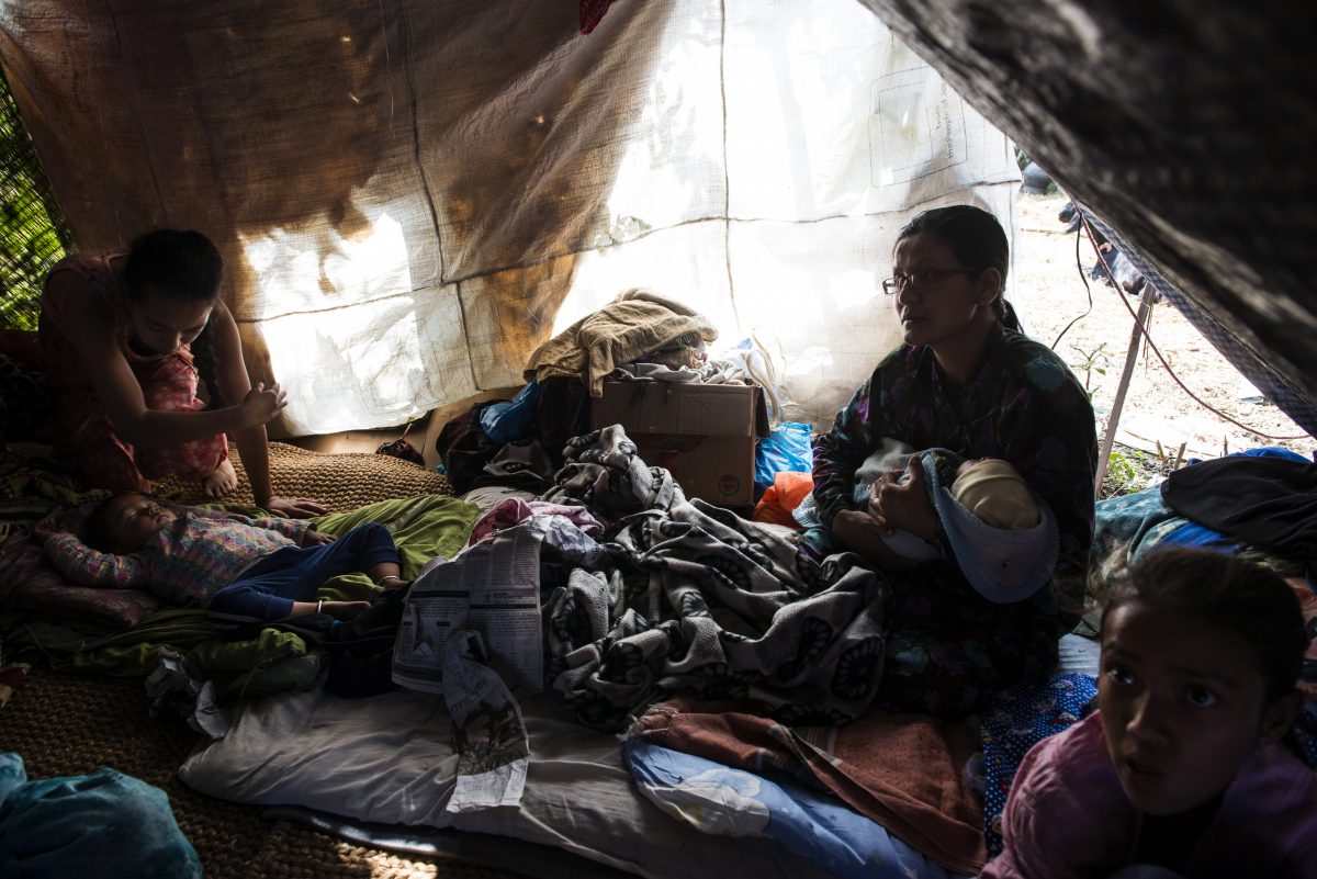 ครอบครัวน้อยใหญ่ต้องอพยพจากบ้านของตัวเองที่เหลือเพียงซากปรักหักพัง เข้าไปสู่บ้านหลังใหม่เป็นเต้นท์เรียงรายอยู่กันอย่างอบอุ่น แม้จะไม่ได้มีสิ่งความอำนวยสะดวกอะไร แต่แค่มีที่พักกาย หลบฝน บังลม พวกเค้าก็พอใจแล้ว ณ ช่วงเวลานั้น เด็กๆเองก็คงจะตกใจไม่น้อย ที่พวกเขาได้เกิดมาดูโลกไม่เท่าไร ก็ต้องมาเจอกับเหตุการณ์แบบนี้ แต่ครอบครัวของชาวเนปาล ก็สามารถมอบความรัก ความอบอุ่นให้กลับคืนมากับลูกหลานได้