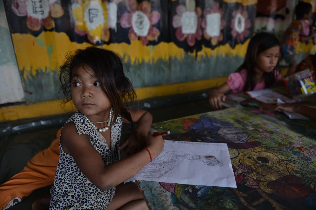 เด็กหญิงกับภาพวาดในจินตนาการของเธอในห้องเรียนศูนย์เด็กก่อสร้าง ซึ่งเป็นโรงเรียนตู้คอนเทรนเนอร์แห่งแรกในประเทศไทยที่ให้โอกาสทางการศึกษาแก่เด็กๆที่อาศัยในแค้มป์คนงานแห่งนี้และหวังได้ว่าจะเป็นหนทางที่จะทำให้มีทางเลือกในชีวิตมากขึ้น