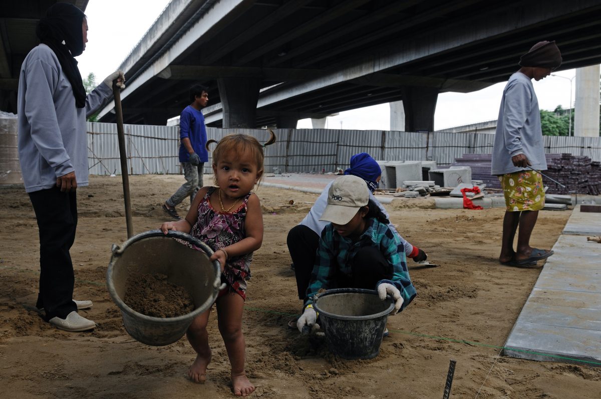 เด็กน้อยวัย 2 ขวบผู้นี้หยิบจับอุปกรณ์ก่อสร้างต่างของเล่นตั้งแต่ยังเด็ก ซึ่งทำให้สามารถคาดเดาอนาคตของเด็กที่ด้อยโอกาสและอาศัยอยู่ในไซด์งานก่อสร้างลักษณะนี้ได้อย่างไม่ยากเลยเด็กที่ไม่ได้รับการศึกษาและมีทางเลือกในชีวิตไม่มากเหล่านี้ควรเข้าสู่ตลาดแรงงานที่กำลังขาดแคลน หรือว่าควรที่จะคิดหาวิธีการแก้ปัญหาทรัพยากรแรงงานที่ยั่งยืนมากกว่านี้