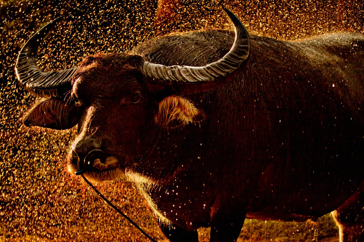 จากนั้นก็จะฉีดน้ำอาบน้ำให้ ควายเรื่อยไปจนกว่าจะเวลา และสัญญาณเริ่มชนในเวลาประมาณห้าโมงครึ่ง ในเวลานี้ก็จะเริ่มมีผู้ให้ความสนใจเข้ามาในสนาม เพื่อมาสังเกตุอาการควายที่แสดงออกก่อนชน