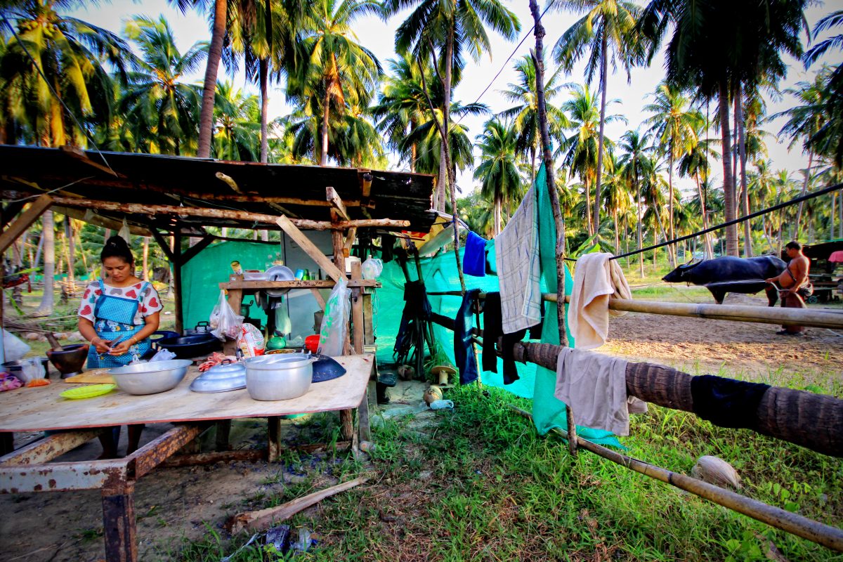 บริเวณใกล้ๆร้านหรือขนัมที่พัก ก็จะมีการแบ่งส่วนสำหรับประกอบหุงหาอาหารกันในบริเวณนั้นเลย โดยจะมีอาหารสด เครื่องใช้จำพวกตู้เย็น น้ำดื่ม เครื่องทำน้ำร้อน อุปกรณ์ทำครัวตั้งไว้ ซึ่งถือว่าเป็นที่ส่วนกลางสำหรับทุกคน ที่เป็นอย่างนี้เพราะต้องมาอยู่เฝ้ากันเป็นเดือนๆ จะทิ้งไปไหนไกลๆโดยไม่มีคนเฝ้าแทบจะไม่ได้เลย
