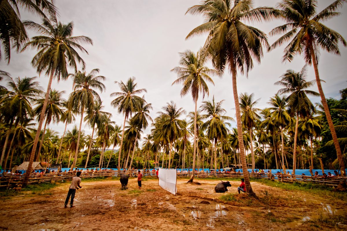 1. ย้อนกลับไปเป็นเวลานานมาแล้ว ทั้งเกาะสมุย และเกาะพะงัน จ.สุราษฎร์ธานี เป็นแหล่งขึ้นชื่อของพันธ์มะพร้าว ทั่วทุกพื้นที่อุดมไปด้วยป่ามะพร้าว จึงจำเป็นต้องพึ่งพาแรงงานจากควาย เอามาเทียมเกวียนเป็นหลักในการออกไปเก็บเกี่ยวผลผลิต ด้วยต้องขึ้นเขา ลงห้วย เดินในที่ราบหรือบนหาดทรายตามแต่เจ้าของจะพาไป ควายที่นี่จึงตัวใหญ่และมีกล้ามเนื้อที่แตกต่างออกไปจากควายทั่วไปที่ไว้ใช้ ไถนา