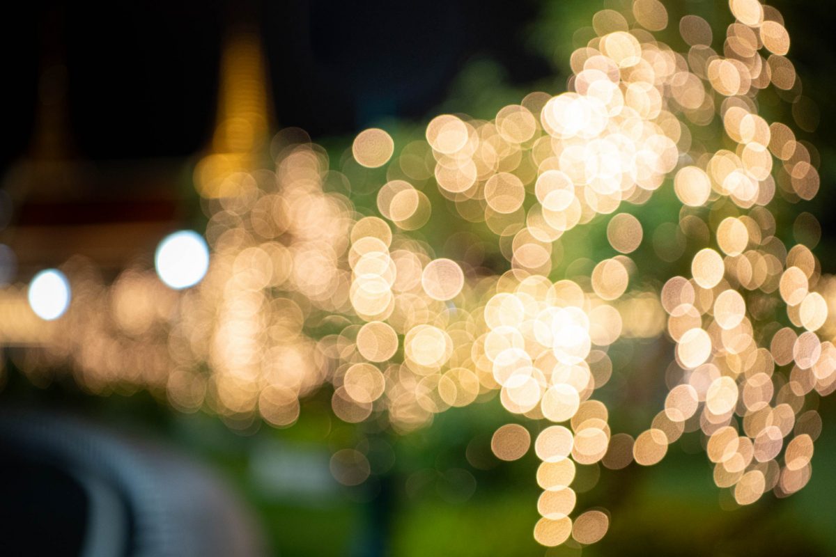 “ลำดับแรกเราจะคำนึงถึงแสงไฟนิ่งก่อน โดยที่ลักษณะของไฟนิ่งจะมี 2 แบบ ดวงไฟแฉกๆ กับ ดวงไฟกลมๆ ลักษณะของไฟนิ่งทั้ง 2 เกิดจากการควบคุมค่ารูรับแสง (F-stop) เลนส์คือดวงตา รูรับแสงคือม่านตา ให้มองไปยังดวงไฟประดับ ให้ลองเราหรี่ตามอง ดวงไฟที่เห็นก็จะเป็นแฉกๆ แต่ถ้าเปิดตากว้างๆมอง จะเห็นดวงไฟกลมมน”