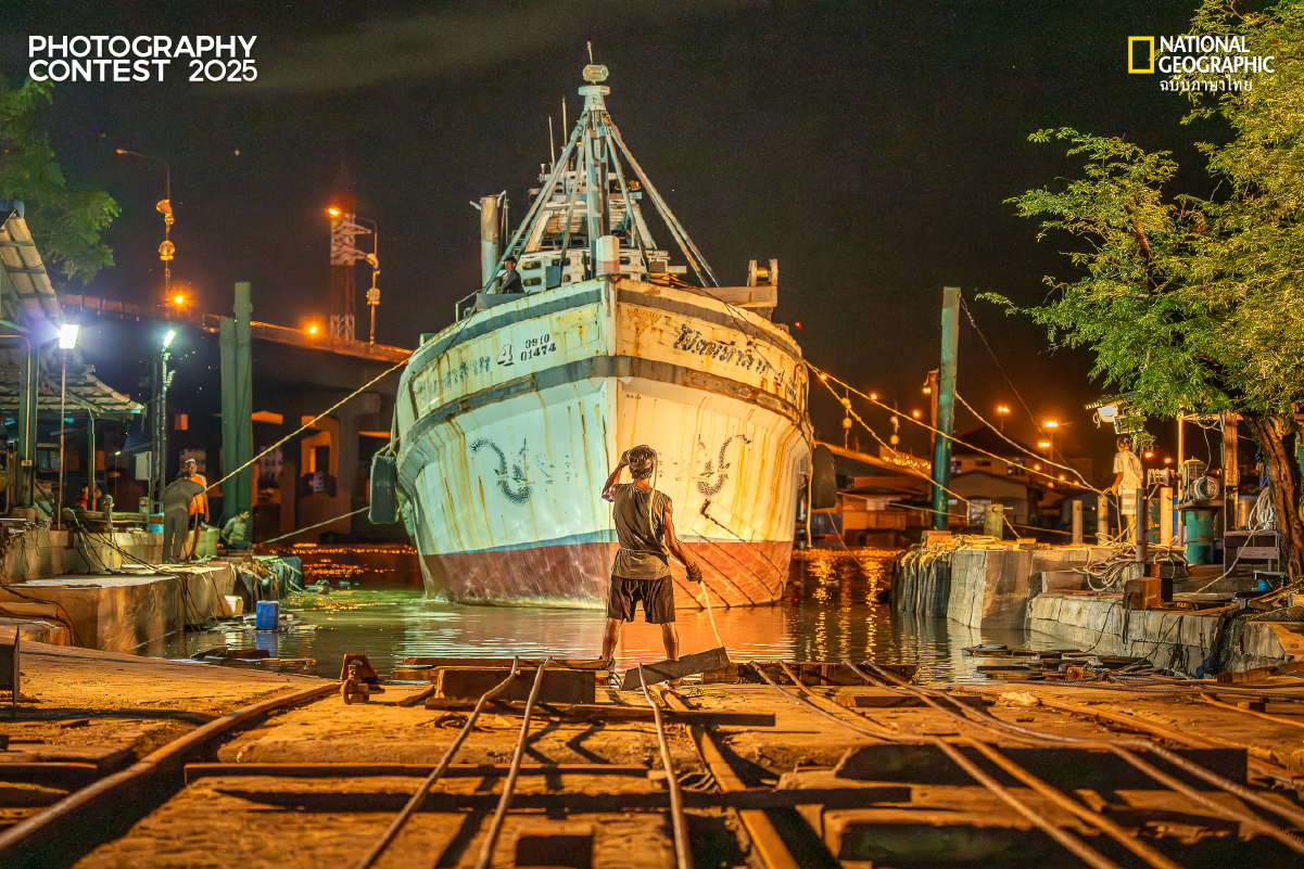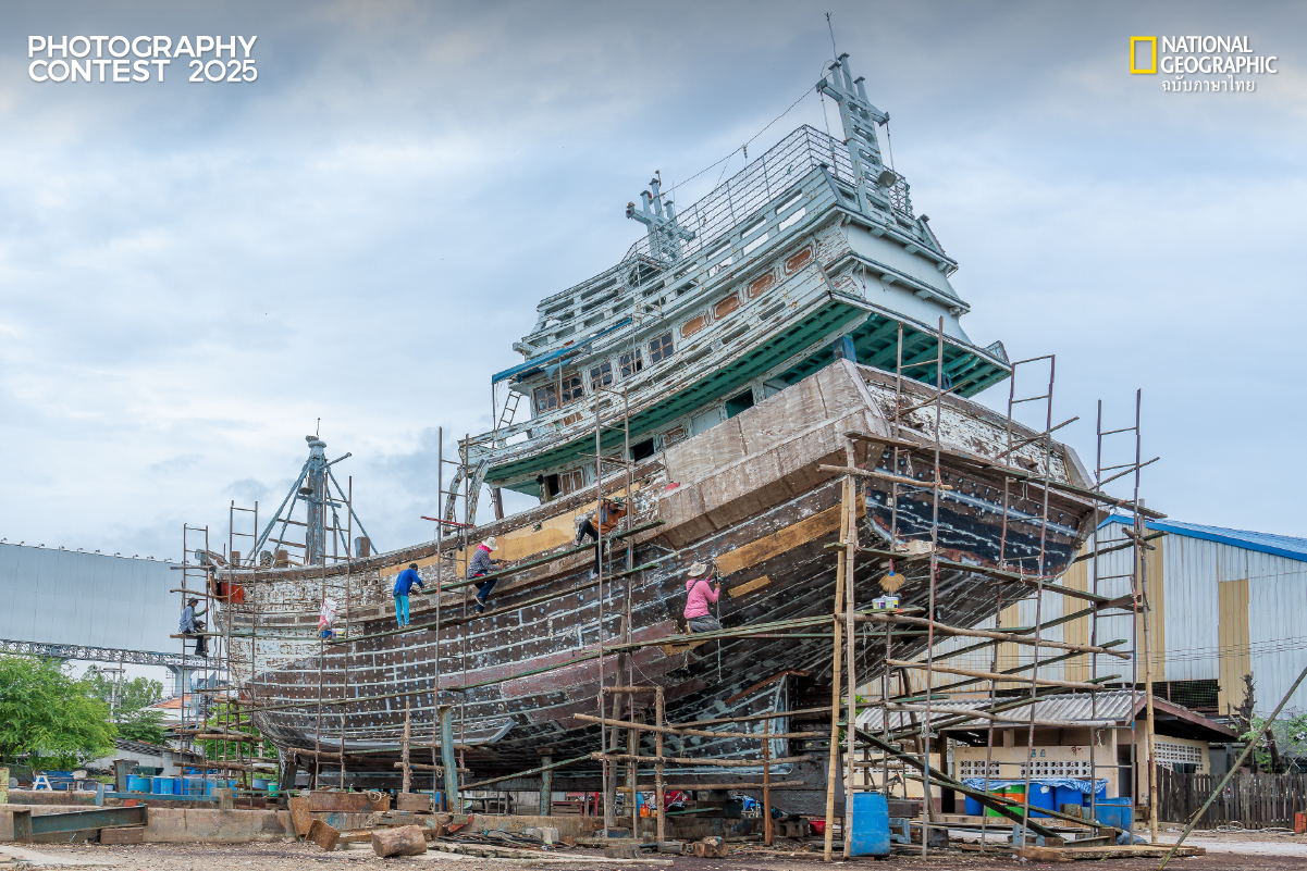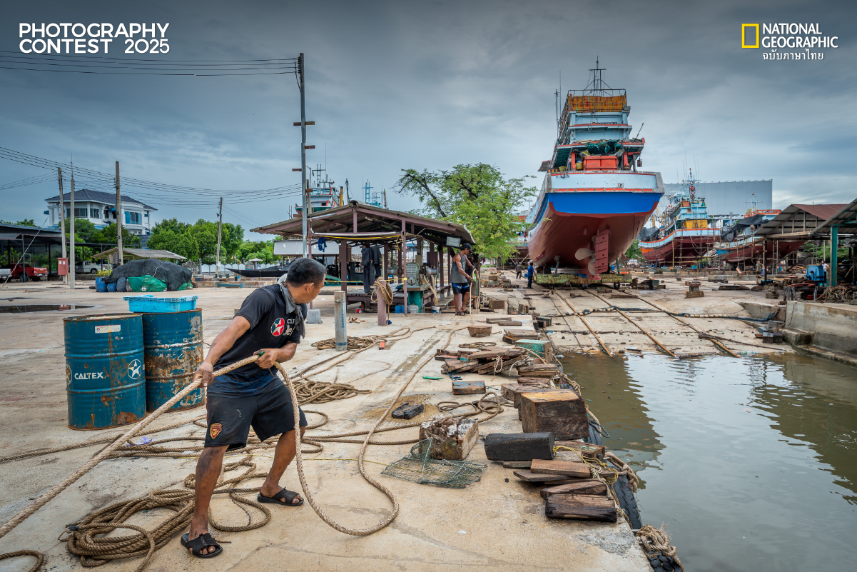 ผลงานรางวัลชนะเลิศ โครงการประกวดสารคดีภาพถ่าย National Geographic Thailand Photography Contest 2025 Season 10 “คานเรือ ชีพจรแห่งชีวิตเรือประมงและสายใยชุมชน” ผลงานโดยคุณชัญญา ธนภัทร์มงคล