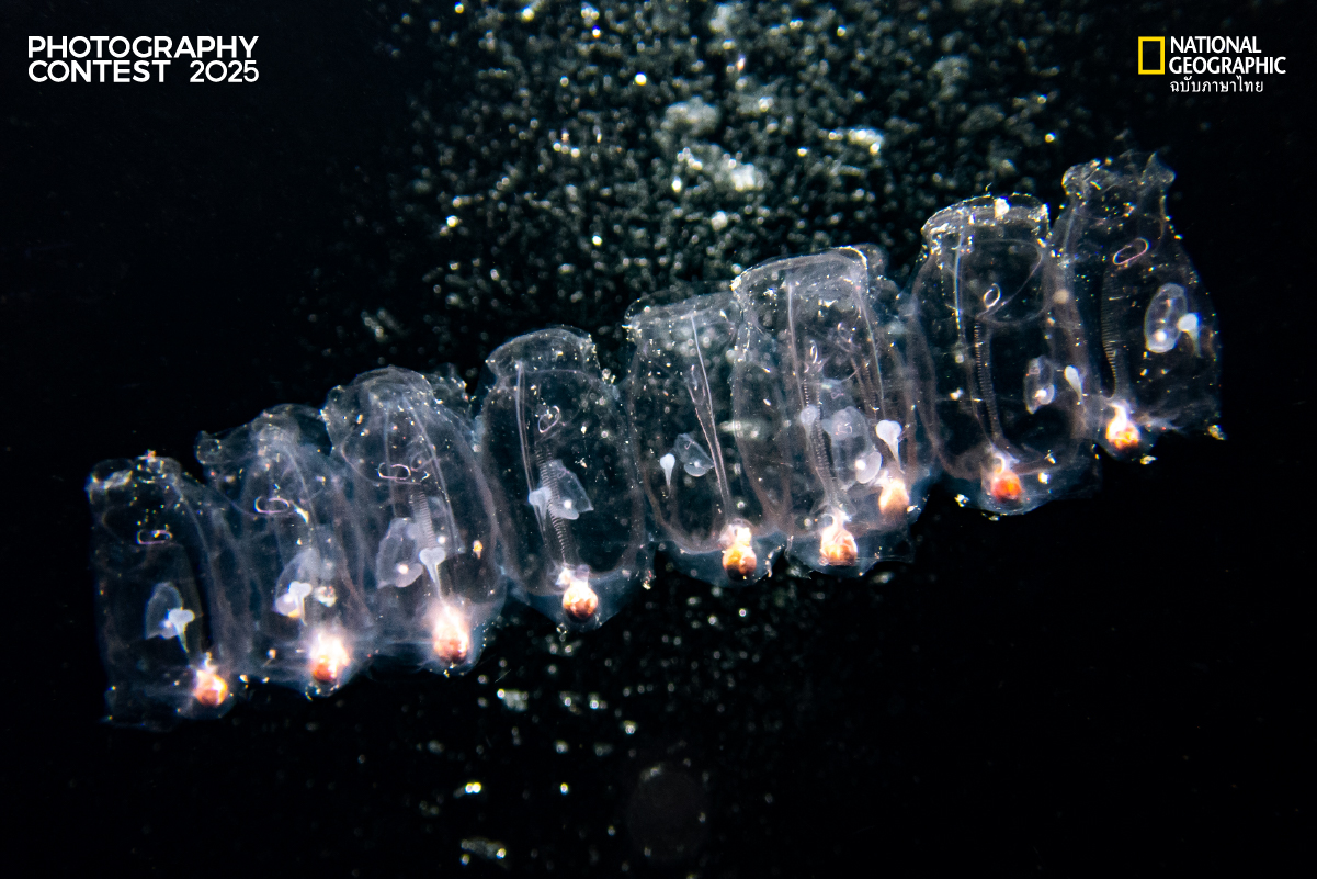 จากหนึ่งตัวสู่ขบวนแห่งชีวิต นี่คือซาล์ป (Salp) ในระหว่างกระบวนการสืบพันธุ์ที่กำลังโคลนตัวเองออกมาเพื่อการดำรงอยู่ของสปีชีส์. Salp บทบาทเป็นผู้ควบคุมระบบนิเวศอย่างเงียบๆ พวกมันคือหนึ่งในสิ่งมีชีวิตไม่กี่ชนิดที่ทำหน้าเป็นผู้กักเก็บคาร์บอนของโลก