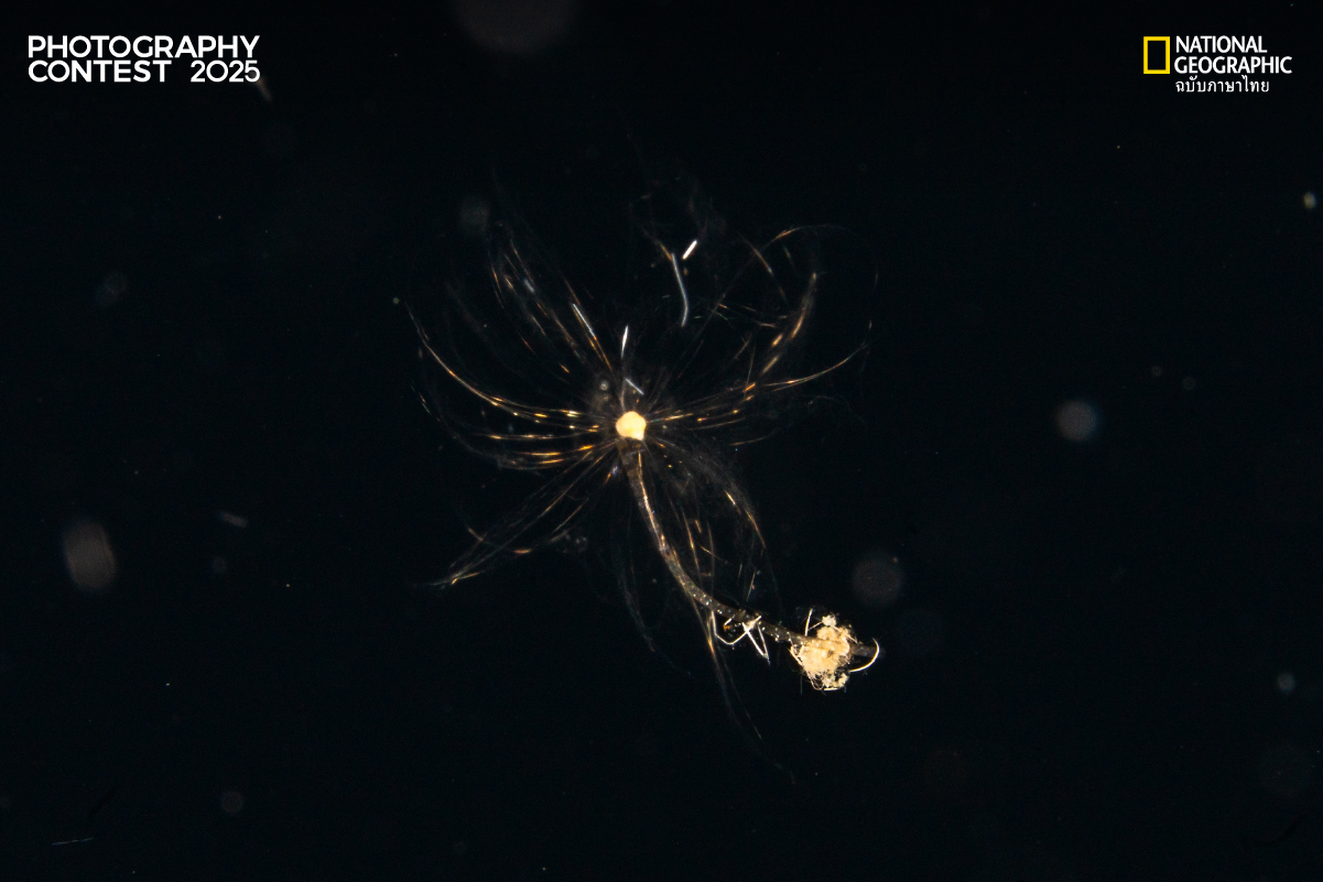 สารคดีภาพชุดนี้จะพาทุกท่านดำดิ่งสู่โลกอันเร้นลับของเหล่าแพลงก์ตอนและสัตว์ทะเลวัยอ่อน สิ่งมีชีวิตรูปทรงแปลกตาที่ล่องลอยอย่างอิสระในม่านน้ำ พวกมันอาจดูเปราะบางและไร้ความหมาย แต่ในความเป็นจริงแล้ว พวกเขาคือรากฐานที่ค้ำจุนระบบนิเวศอันยิ่งใหญ่ของมหาสมุทรเอาไว้ทั้งหมด ทุกชีวิตที่ถือกำเนิดขึ้นในรัตติกาลนี้ คืออาหารคำแรก คือพลังงานก้อนแรก ที่จะถูกส่งต่อไปตามห่วงโซ่อาหาร เพื่อหล่อเลี้ยงปลาเล็ก ปู ไปจนถึงฉลามผู้สง่างามและวาฬยักษ์เจ้าสมุทร ภาพถ่าย Blackwater เหล่านี้จึงเปรียบเสมือนการเปิดม่านการแสดงของบทแรกสุด เผยให้เห็นเหล่า “ผู้สร้าง” ที่แท้จริง ผู้อยู่เบื้องหลังความอุดมสมบูรณ์และความหลากหลายในท้องทะเล