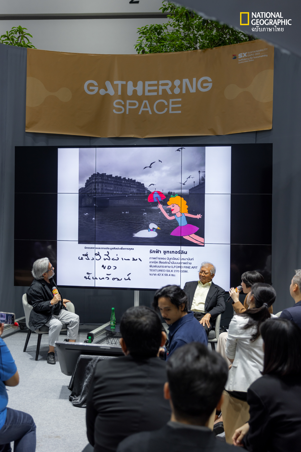 บนเวที Gathering Space ในงาน Sustainability Expo 2025 (SX2025) ที่ศูนย์การประชุมแห่งชาติสิริกิติ์ เมื่อวันที่ 29 กันยายนที่ผ่านมา ศ.ดร.นันทวัฒน์ บรมานันท์ กรรมการอิสระ Amarin Group และอดีตคณบดีคณะนิติศาสตร์ จุฬาลงกรณ์มหาวิทยาลัย ได้มาเล่าเรื่องราวดี ๆ ให้พวกเราได้ฟังอีกครั้ง โดยมี คุณศุขสนั่น โชติกเสถียร ประธานกรรมการ มูลนิธิอนุเคราะห์คนหูหนวกในพระบรมราชินูปถัมภ์ ร่วมพูดคุยในหัวข้อ ‘When pictures speak volumes แรงบันดาลใจและเส้นทางสู่ภาพถ่ายเพื่อสังคม’