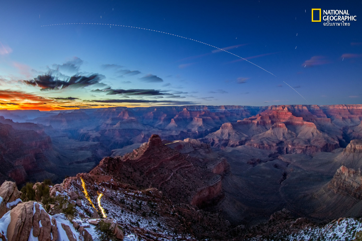 บางครั้งเอกภพก็เป็นใจกับพวกเขา ดาวหางที่มาเยือนจากขอบระบบสุริยะปรากฏขึ้นหนึ่งสัปดาห์หลังเพอทิตไปถึงวงโคจร ทาเฟรชีสังเกตดาวหางนั้นในเปอร์โตรีโก แต่เพอทิต “มีมุมมองที่ดีที่สุด” เพราะอยู่พ้นบรรยากาศโลกมัวๆที่มาพร้อมเมฆระเกะระกะ ไม่นานหลังจากนั้น พายุแสงเหนือใต้ (aurora storm) ครั้งใหญ่เกิดขึ้นบนท้องฟ้าเหนือบ้านของทาเฟรชี สะดวกอะไรเช่นนี้! และช่างภาพทั้งสองก็ถ่ายเหตุการณ์นี้ห่างกันเพียงไม่กี่ชั่วโมง เป็นครั้งที่เวลาถ่ายภาพของทั้งคู่ใกล้กันที่สุด ถ้าพูดถึงเรื่องระลอกแสงสีเขียวลึกลับนี้ การมองจากสองมุมย่อมดีกว่ามุมเดียว “ถ้าคุณดูระลอกเดียวกันจากวงโคจร คุณอาจพบว่าที่จริงมันเป็นวงรีครับ” เพอทิตกล่าว ราวกับว่าพวกเขารุมล้อมปรากฏการณ์บรรเจิดนั้น และเผยธรรมชาติที่แท้จริงของมันออกมา