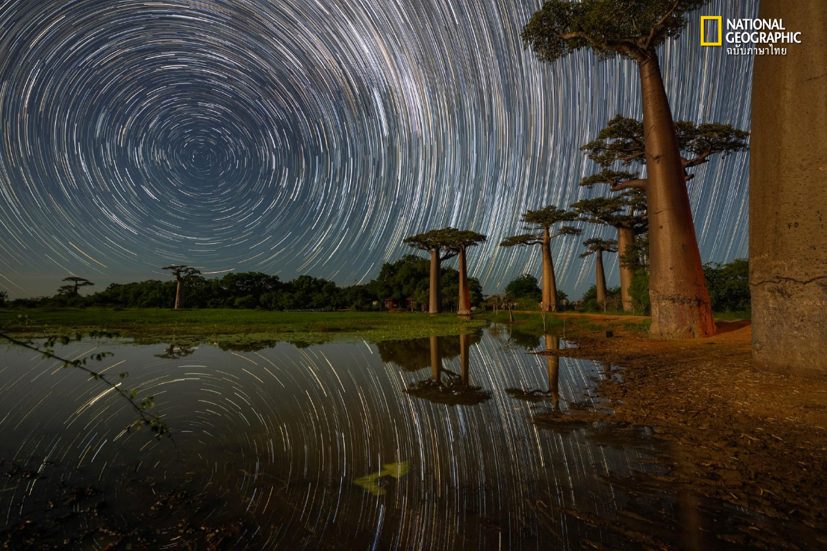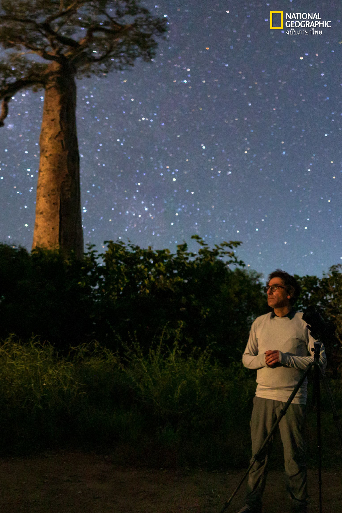 การถ่ายภาพมาดากัสการ์เป็นงานสุดท้ายในโครงการนี้ของพวกเขา ก่อนเพอทิตจะเดินทางกลับสู่โลก ภูมิภาคนี้มีแสงไฟฟ้าน้อยมาก ดังนั้นภาพของเพอทิตจึงอาศัยการเรียงตัวของเทห์ฟ้า คือจันทร์เพ็ญที่ส่องภูมิทัศน์ในความครอบงำของรัตติกาล ทาเฟรชียืนอยู่ท่ามกลางป่าไม้พุ่ม ดื่มด่ำกับทางช้างเผือกระยิบระยับบนท้องฟ้าพิสุทธิ์ “มันเหนือจริงครับ” เขาบอก ความสงัดเงียบยามเย็นถูกคั่นด้วยเสียงเซ็งแซ่ยามค่ำคืนของสัตว์ป่าที่มองไม่เห็นและชาวบ้านนั่งเกวียนเทียมล่อที่ผ่านไปมา จากเบื้องบน โลกคือพิภพเรืองรองใต้บรรยากาศเบาบางในความว่างเปล่าอันธการ จากเบื้องล่าง โลกคือความรกเรื้อของพฤกษชาติ สัตวชาติ และมนุษยชาติ ซึ่งเท่าที่เรารู้ ไม่มีในที่อื่นใดอีก