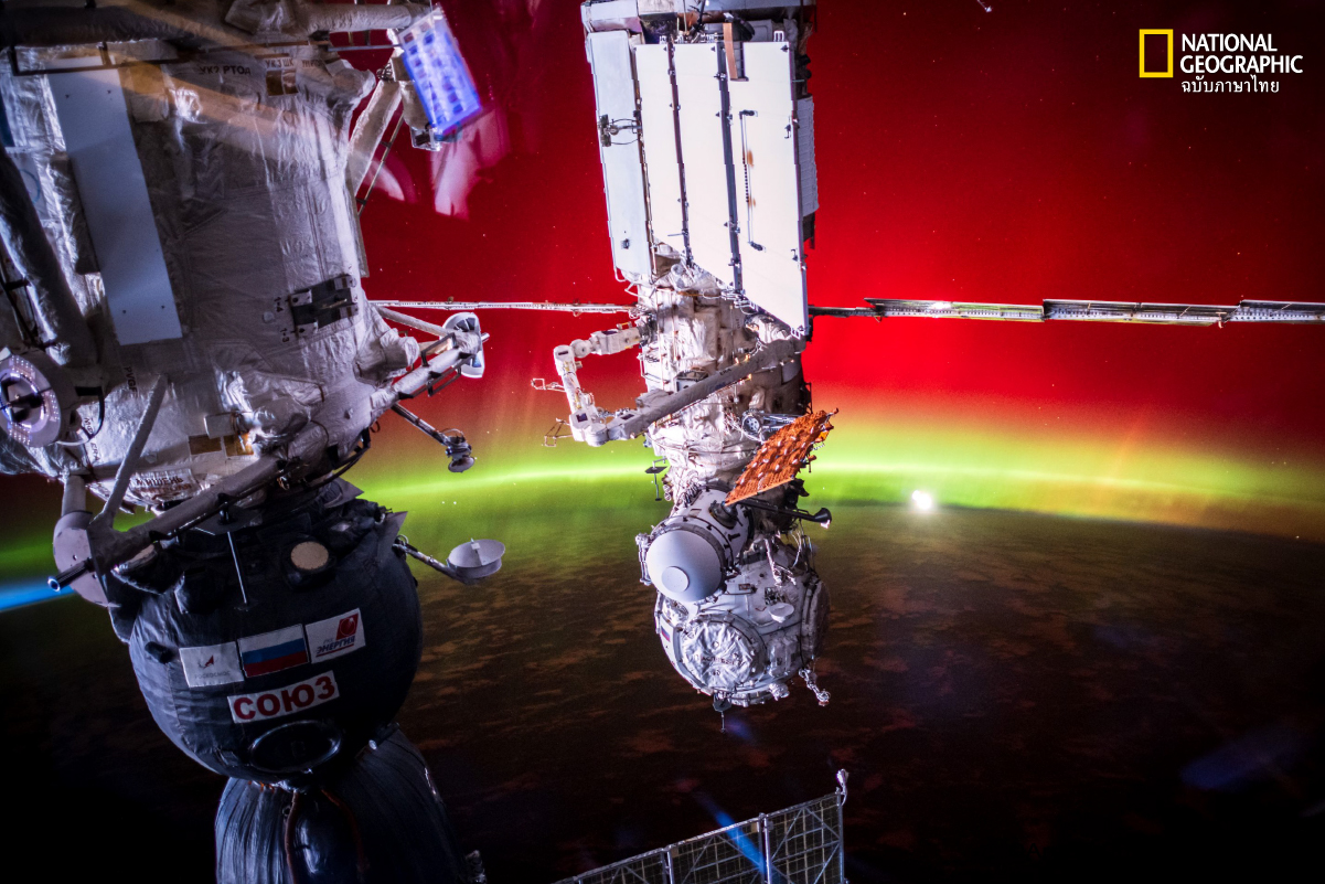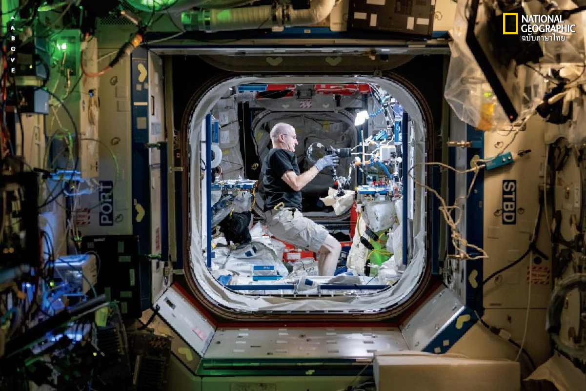 ถึงเพอทิตจะรอดพ้นจากอุปสรรคในวันแย่ๆของช่างภาพในโลกอย่างฝนตก กล้องของเขาอาจทํางานผิดปกติบ้างจากรังสีคอสมิกซึ่งมองไม่เห็นที่พุ่งเข้าใส่อย่างต่อเนื่อง และบ่อยครั้งสิ่งของในชีวิตมนุษย์อวกาศก็ผลุบเข้ามาในเฟรมภาพ ครั้งหนึ่ง ทาเฟรชีไล่ดูภาพหมู่เกาะมัลดีฟส์ในมหาสมุทรอินเดียที่เพอทิตถ่ายมา เขาสังเกตเห็นหย่อมสีเขียวน่าสนใจในน้ำ สาหร่ายสะพรั่งอย่างนั้นหรือ “ผมตื่นเต้นมากจนกระทั่งได้ดูอีกสองสามภาพ ถึงเห็นว่าหย่อมนี้เลื่อนเร็วมาก” ทาเฟรชีเล่า มันกลายเป็นเครื่องยกน้ำหนักที่สะท้อนอยู่ในกระจกโดม “ลูกเรือทุกคนออกกําลังกายบนเครื่องนี้วันละหนึ่งชั่วโมงครึ่งครับ” เพอทิตเล่า เขาขอเพื่อนร่วมงานเป็นครั้งคราวว่าขัดข้องไหมถ้าจะปิดไฟและออกกําลังกายมืดๆ สักไม่กี่นาที ไม่ใช่ทุกคนที่ยอมตาม