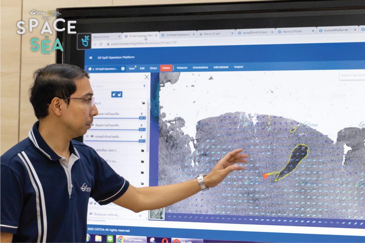และการที่น้ำมันที่รั่วไหล ส่งผลอย่างไรกับทรัพยากรทางทะเลและชายฝั่ง หน่วยงานสามารถเข้ามาเพื่อใช้ข้อมูลในการวางแผนแก้ปัญหา ในส่วนของ GISTDA เองเราทำหน้าที่หลังบ้านคอยสนับสนุนข้อมูลตามที่หน่วยงานร้องขอ และเผยแพร่ข้อมูลประชาสัมพันธ์ในช่องทางของ GISTDA อีกทางหนึ่ง”