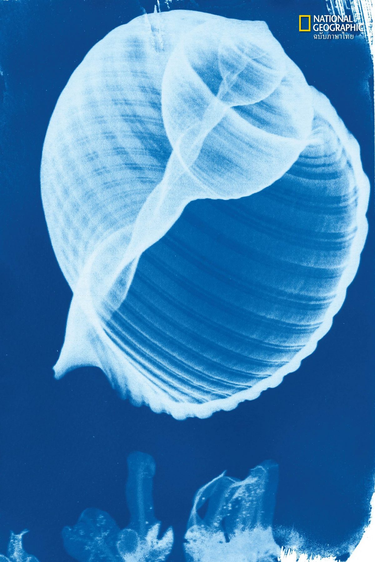 เราเห็นมันได้ใน วงเกลียวลอการิทึมของหอยงวงช้าง สีขาวนวลเหลือบรุ้งของหอยเป๋าฮื้อ เกลียวเปลือกที่เต็มไปด้วยหนามของหอยสังข์ราชินี แม่นยำ สง่างาม แข็งแกร่ง เปลือกหอยเป็นความกลมกลืนของรูปทรงและการใช้งานที่ทั้งท้าทายและชี้นำ การสร้างสรรค์ของมนุษย์