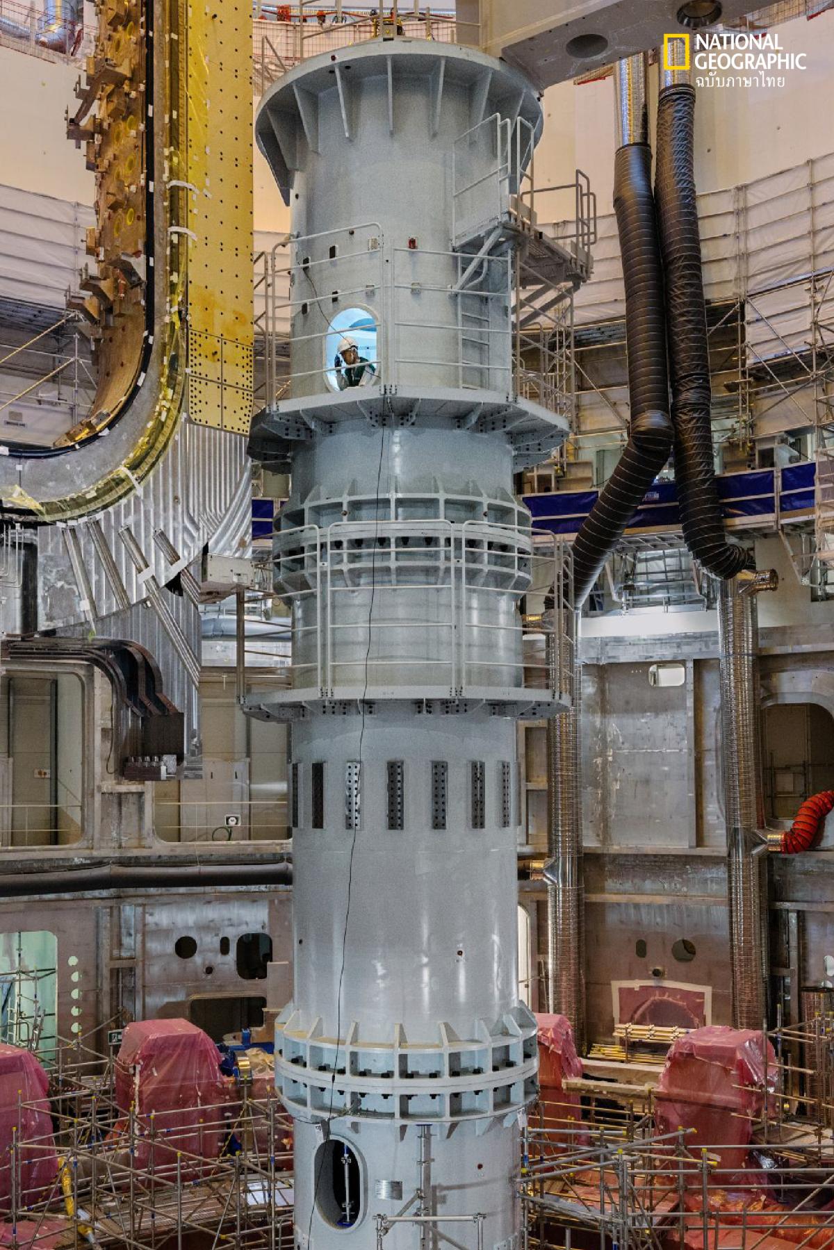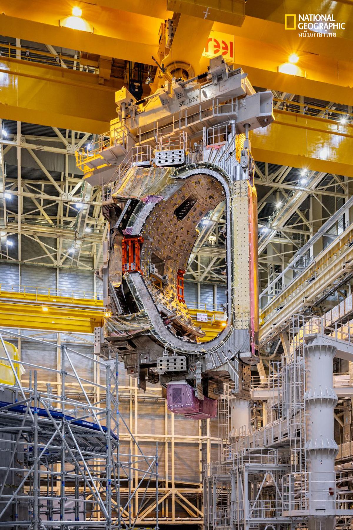 โลหะจำนวนมากถูกขัดจนมันวาว หลายชิ้นชุบเงิน ซึ่งเป็นวัสดุในอุดมคติสำหรับหันเหความร้อนจากชิ้นส่วนเปราะบาง แถวท่อขนานกันหลายแถวลดเลี้ยวไปตรงโน้นตรงนี้ หัวใจของเครื่องจักรคือลูกกลมขนาดยักษ์ ที่บรรจุกระบอกรูปโดนัตข้างในกลวง สำหรับบรรจุพลาสมาที่อาจหมุนวนในอนาคต อุปกรณ์นี้เรียกว่า โทคาแมก (tokamak) มันแทบไม่มีขอบคม และชิ้นส่วนขนาดใหญ่ทุกซีกของอีเทอร์ก็ได้รับการสลักกลึงเป็นเส้นโค้งที่งดงามเหมือนผิวของหินทราย