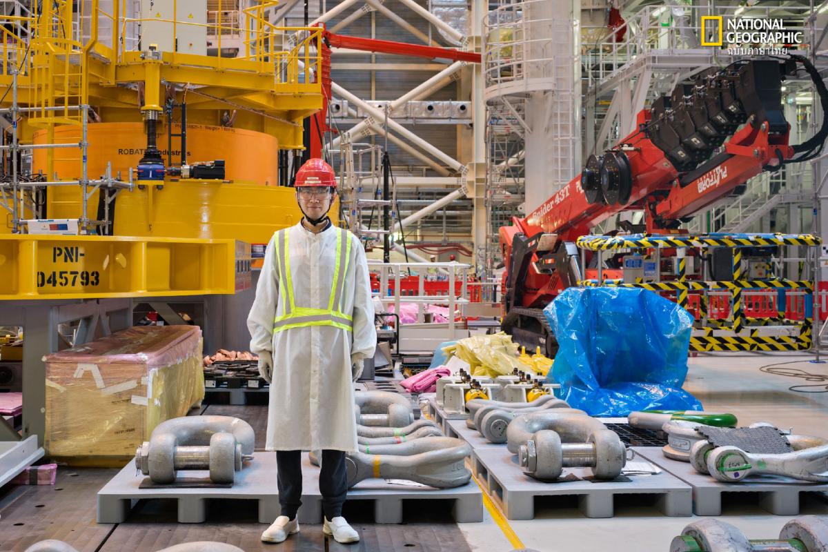 นี่คือระบบนิเวศอุตสาหกรรมแห่งท่อและแผ่นโลหะมหึมาจนคุณงงกับขนาดของมัน กระทั่งเห็นคนงานชุดขาวโยงตัวกับนั่งร้าน เหมือนมดบนเนินเขา คุณถึงตระหนักในความใหญ่โตมโหฬารตรงหน้า จักรกลทั้งหมดกินพื้นที่เท่ากับอาคาร 20 ชั้น เมื่อสร้างเสร็จมันจะมีชิ้นส่วน 10 ล้านชิ้น หลายแสนชิ้นผลิตเป็นพิเศษ น้ำหนักทั้งหมดรวมผนังหุ้มอยู่ที่ประมาณ 400,000 ตัน อีเทอร์อาจเป็นจักรกลซับซ้อนที่สุดที่มนุษย์เคยพยายามสร้างขึ้นมา
