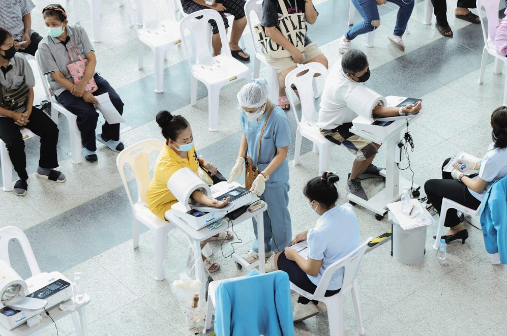 - มีการจัดเตรียมห้องปฐมพยาบาลและอุปกรณ์ทางการแพทย์ดูแลทุกคน หากพักสังเกตอาการแล้ว ไม่มีอาการผิดปกติ จะเข้าสู่จุดตรวจสอบก่อนกลับ รับเอกสารการปฏิบัติตัวหลังฉีดวัคซีน และเดินทางกลับบ้าน
