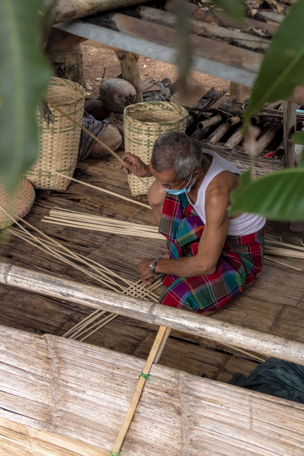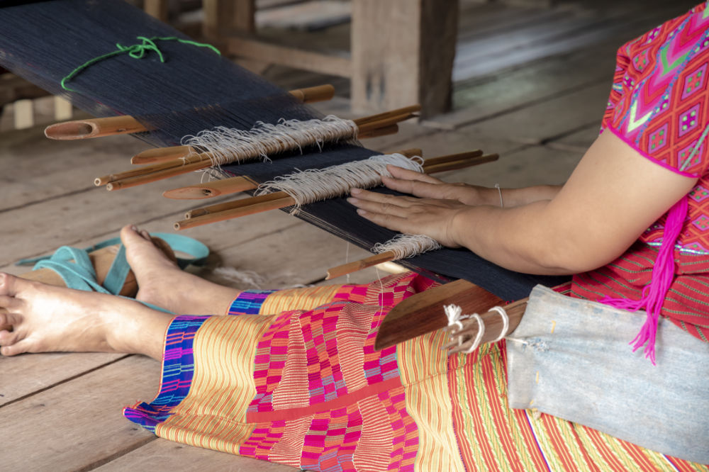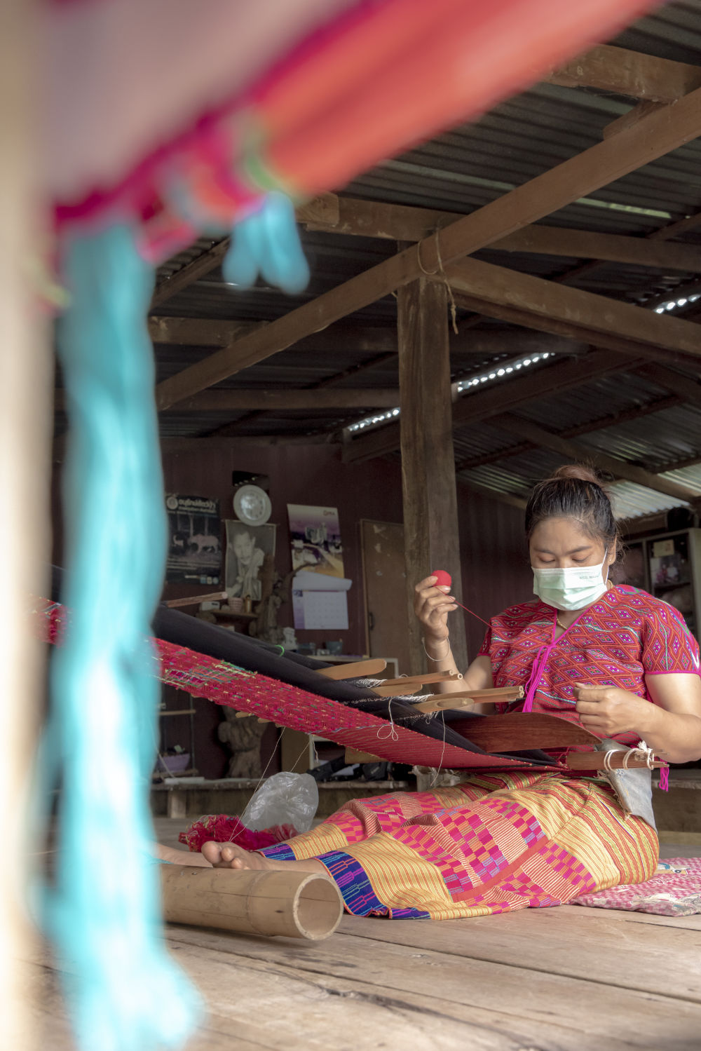 เริ่มต้นที่เเรก “หมู่บ้านไกรเกรียง” ที่ตั้งอยู่ท้ายเขื่อนศรีนครินทร์ เขื่อนหินถมแกนดินเหนียวที่ใหญ่ที่สุดในไทย ความกว้างใหญ่นี้มีชุมชนเล็ก ๆ ซ่อนตัวอยู่อย่างงดงาม พี่น้องชาวกะเหรี่ยงรวมกลุ่มกันตั้งหมู่บ้าน ใช้ชีวิตอย่างเรียบง่ายและผูกพันกับธรรมชาติ สานกระบุงและทอผ้านุ่งใส่เอง โดยใช้ “กี่เอว” วิธีการทอผ้าของชนพื้นเมืองที่ทำให้ผ้ามีลวดลายและเอกลักษณ์แตกต่างจากผ้าทอจากที่อื่น ๆ
