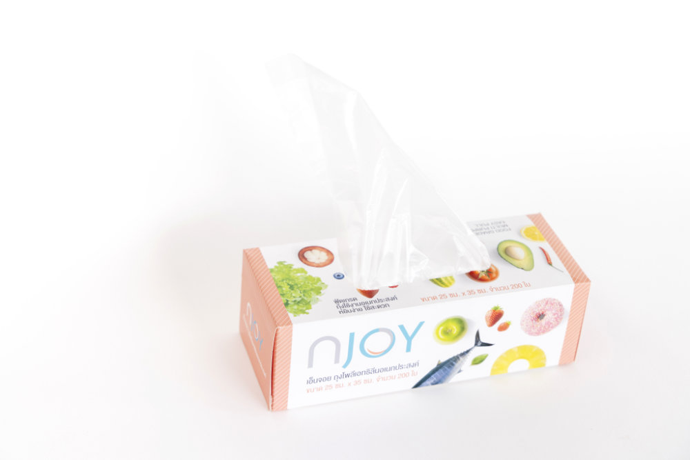 เริ่มจากกล่องถุงอเนกประสงค์ ที่จะมาแทนที่ถุงซิปล็อกด้วยราคาต่อใบที่ถูกกว่า และเนื้อถุงที่บางกว่า แต่ยังคงการใช้งานที่ครบถ้วน เพราะเป็น Food Grade จึงสามารถใช้งานใส่อาหารสำหรับเก็บเข้าตู้เย็น แบ่งวัตถุดิบสำหรับเก็บรักษาในช่องฟรีซ หรือแบ่งวัตถุดิบอาหารเป็นส่วนเล็กๆ สำหรับทยอยใช้เป็นครั้งๆ ก็ทำได้สะดวก