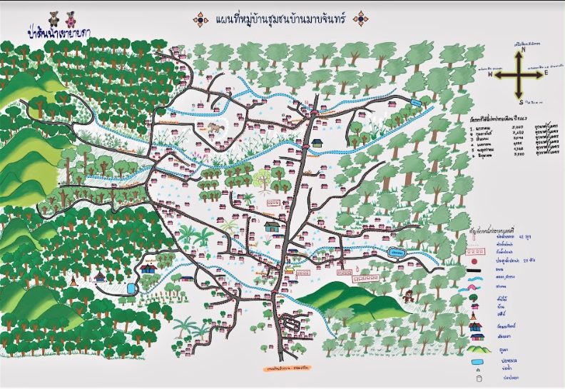 นอกเหนือไปจากการวิเคราะห์ข้อมูลที่เกี่ยวข้องกับปริมาณน้ำฝน ชาวชุมชนรอบเขายายจะออกสำรวจแหล่งน้ำมีที่อยู่ในชุมชน ทั้งบ่อน้ำภายในสวนของชาวบ้าน บ่อน้ำสาธารณะ รวมไปถึงแม่น้ำลำธาร เพื่อนำข้อมูลเหล่านี้มาจัดทำผังน้ำของชุมชน เพื่อให้ทราบถึงปริมาณน้ำที่ชุมชนสามารถนำมาหาวิธีใช้ให้เกิดประโยชน์ได้สูงสุดทั้งปี ทั้งในยามหน้าฝนหรือหน้าแล้ง