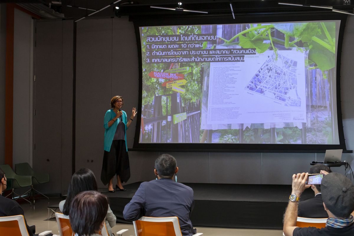 ก่อนที่จะเข้าสู่โครงการ ผู้ช่วยศาสตราจารย์ ดร.นิรมล เสรีสกุล ผู้อำนวยการ UddC-CEUS ได้บอกเล่าเรื่องราวของความสำคัญของการพัฒนาเมือง กระบวนการและปัจจัยสู่การสร้างพื้นที่แห่งคุณภาพชีวิต พร้อมกับการนำเสนอความเป็นไปได้ในการพัฒนาพื้นที่สีเขียวจากการ “เปิดข้อมูลเพื่อช่วยกันเปลี่ยนเมือง” และการขับเคลื่อนยุทธศาสตร์ในระดับย่านและเมือง