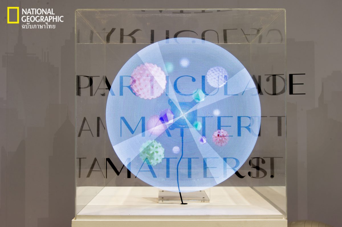 โดยนิทรรศการจะให้ความรู้ผ่านการฉายภาพผ่านจอรูปทรงวงกลม ซึ่งจำลองเป็นอนุภาคของฝุ่น