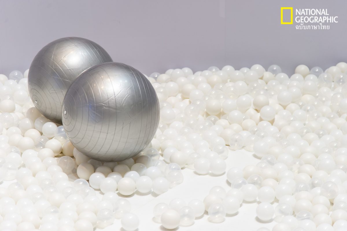 พื้นที่ด้านล่างของนิทรรศการจะมี ‘ลูกบอล’ ที่มีขนาด ลักษณะ และสีที่แตกต่างกัน เป็นตัวแทนของฝุ่นประเภทต่างๆ ที่ลักษณะทางกายภาพ ที่มา และแหล่งกำเนิดที่ต่างกัน ซึ่งเป็นส่วนการเรียนรู้ที่เหมาะสมกับเด็กๆ และคนทุกวัยที่จะมาเรียนรู้ในเรื่องของประเภทของฝุ่นได้ผ่านลูกบอลหลากสีนี้