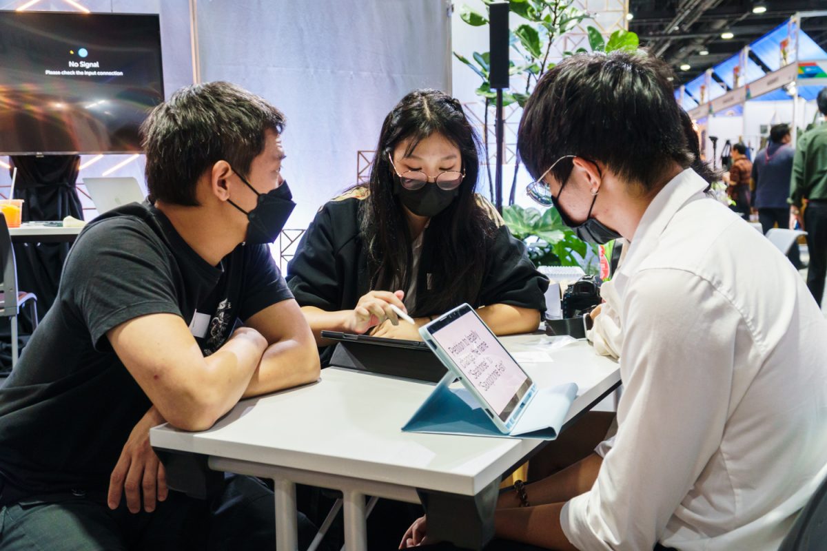 จากนั้น โจนาธาน เจย์ ลี (Jonathan Jay Lee) อธิบายภาพประกอบที่เขาเตรียมมาให้กับนักศึกษาสาขา Communication Design วิทยาลัยนานาชาติ มหาวิทยาลัยมหิดล (MUIC) ที่มาร่วมเวิร์คช็อป เขาสอนไปถึงเทคนิคการใช้แอพ Procreate เลยทีเดียว