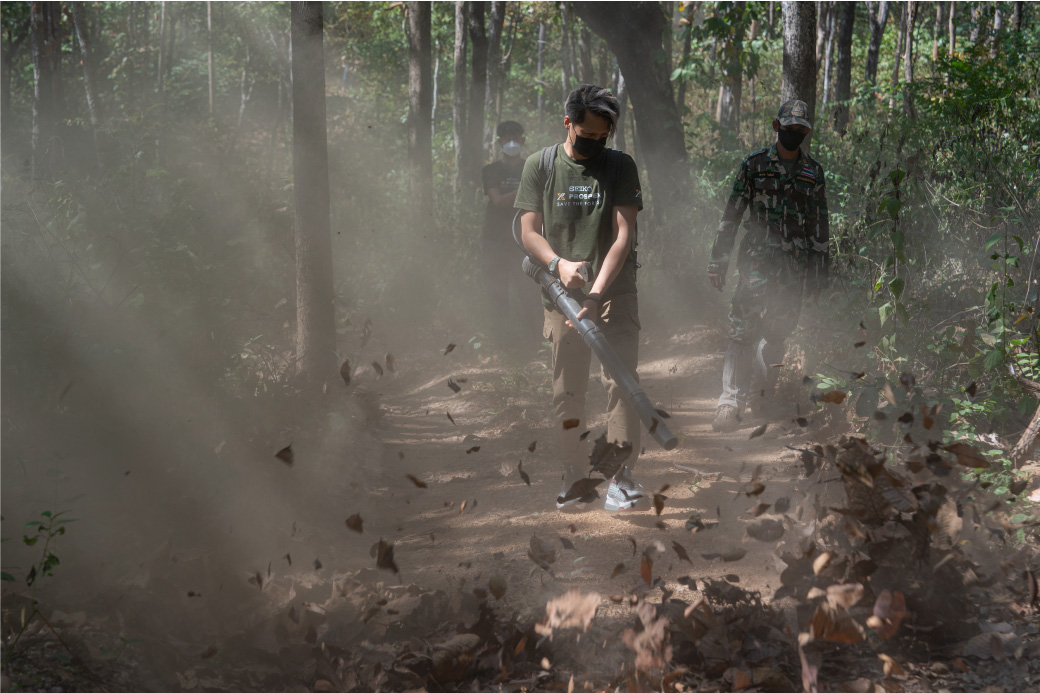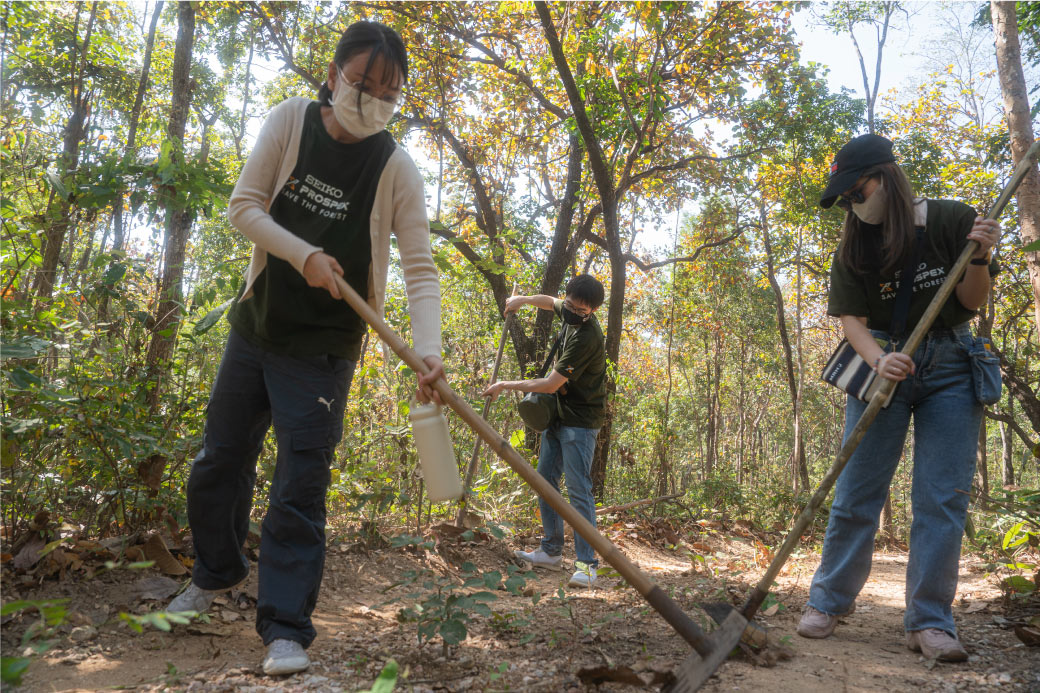 หลังจากนั้น คณะทำงานของ Seiko และสื่อมวลชน ได้ร่วมมือทำกิจกรรมเพื่ออนุรักษ์และปกป้องผืนป่าด้วยการทำแนวกันไฟในบริเวณแนวป่าห้วยขาแข้ง ซึ่งเป็นบริเวณที่มีบรรดาสัตว์ป่าเข้ามาดำรงชีวิตอยู่จริงๆ ร่วมกับเจ้าหน้าที่อุทยาน โดยเจ้าหน้าที่ฯ ได้อธิบายถึงความสำคัญของการทำแนวกันไฟ รวมถึงประโยชน์ที่มีต่อความสมบูรณ์ของผืนป่าแห่งนี้ ซึ่งเป็นโอกาสอันดีที่ทางคณะผู้ร่วมกิจกรรม ได้เข้ามาร่วมลงมือทำงานอาสาครั้งนี้อย่างจริงจังกับร่วมเจ้าหน้าที่ที่ทำงานอยู่จริงๆ