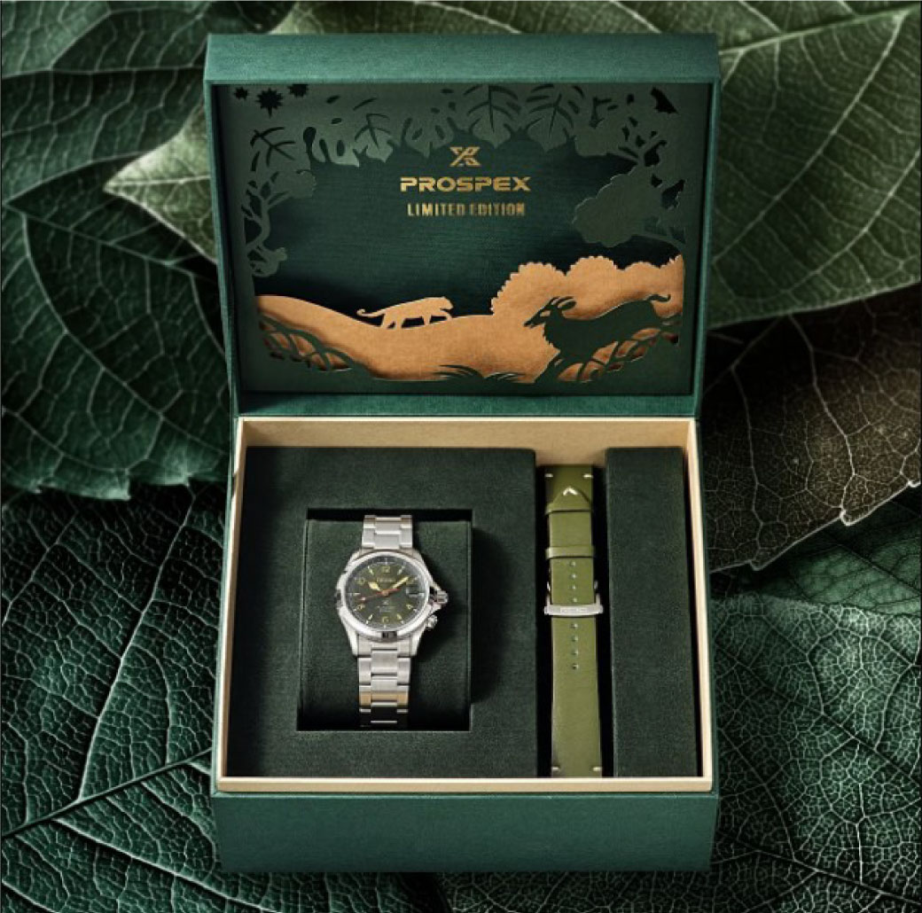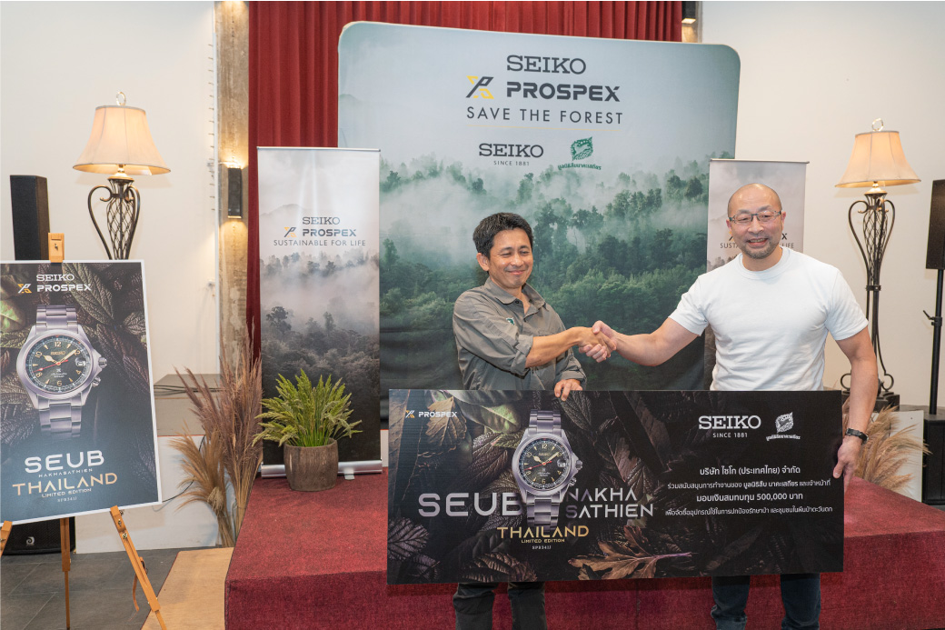 Seiko ได้ร่วมมือกับ มูลนิธิสืบนาคะเสถียร องค์กรไม่แสวงหาผลกำไร ที่ทุ่มเทแรงกายแรงใจในการสานต่อเจตนารมย์ของ สืบ นาคะเสถียร ในการพิทักษ์ ช่วยเหลือ และรักษาผืนป่าห้วยขาแข้ง และสัตว์ป่าทุกชีวิต จนได้ผลลัพธ์เป็นออกมาเป็นนาฬิกาคอลเลคชั่นพิเศษ สืบ นาคะเสถียร ไทยแลนด์ ลิมิเต็ด อิดิชั่น (Seub Nakhasathien Thailand Limited Edition) ที่ได้เริ่มวางจำหน่ายในช่วงเดือนธันวาคม 2565 เพื่อให้สอดคล้องกับแนวคิดของโครงการเพื่อการอนุรักษ์สิ่งแวดล้อมอย่างโครงการ Save the Forest ของ Seiko ที่กำลังดำเนินการอย่างจริงจัง และนาฬิการุ่นนี้ก็ได้ผลตอบรับที่ดีเกินคาด