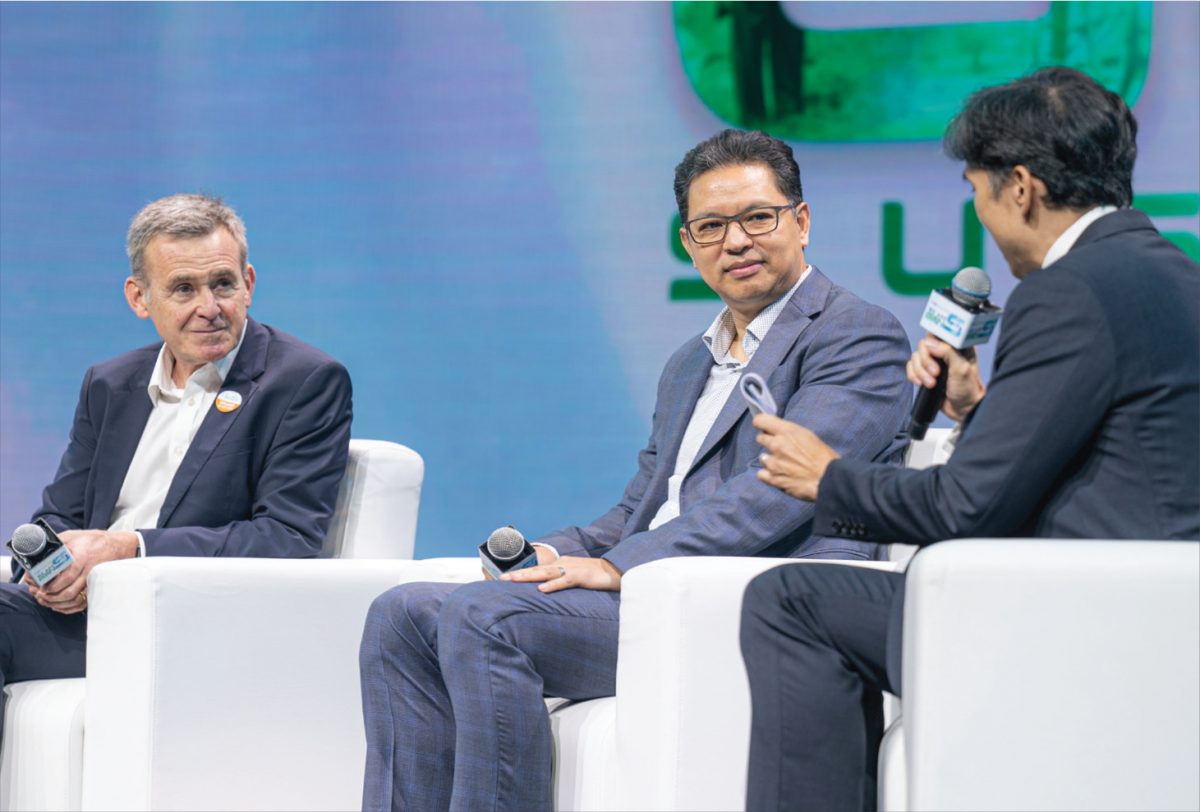 ช่วงหนึ่งในวันแรก มีการเล่าประสบการณ์จากตัวแทนธุรกิจชั้นนำระดับโลก อาทิ ตัวแทนจาก Accenture ผู้เชี่ยวชาญด้านเทคโนโลยีระดับโลกที่ให้ความสำคัญด้านความยั่งยืนมาอย่างต่อเนื่อง และยาวนาน ตัวแทนจาก Allnex ผู้นำระดับโลกด้านการผลิต Coating Resins ที่เป็นมิตรต่อสิ่งแวดล้อม ตัวแทนจาก Econic ผู้นำนวัตกรรมเปลี่ยนก๊าซคาร์บอนไดออกไซด์ให้กลายเป็นพลาสติก และเคมีภัณฑ์เพี่อตอบโจทย์การใช้ชีวิตของผู้คนปัจจุบัน ทั้งยังมีตัวแทนจาก Microsoft ผู้นำด้านดิจิทัล และเทคโนโลยีที่ขับเคลื่อนธุรกิจสู่ความยั่งยืนตอบโจทย์เทรนด์โลกที่ไม่หยุดนิ่ง