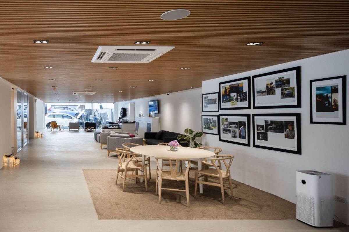 สำหรับแนวคิดเรื่องการตกแต่งโชว์รูม จะมาจากมาตรฐาน Brand CI (อัตลักษณ์องค์กร) ของvolvoอยู่แล้ว เรามาออกแบบปรับให้เข้ากับพื้นที่ที่เป็นอยู่ แบบ CI จะออกมาในลักษณะminimal ลดการก่อสร้างที่ซับซ้อน และเลือกใช้วัสดุรีไซเคิลเป็นหลัก ให้ความรู้สึกที่อบอุ่น และเป็นมิตร ตามรูปแบบสแกนดิเนเวียน สวยงาม เป็นมิตร และรักษ์โลก