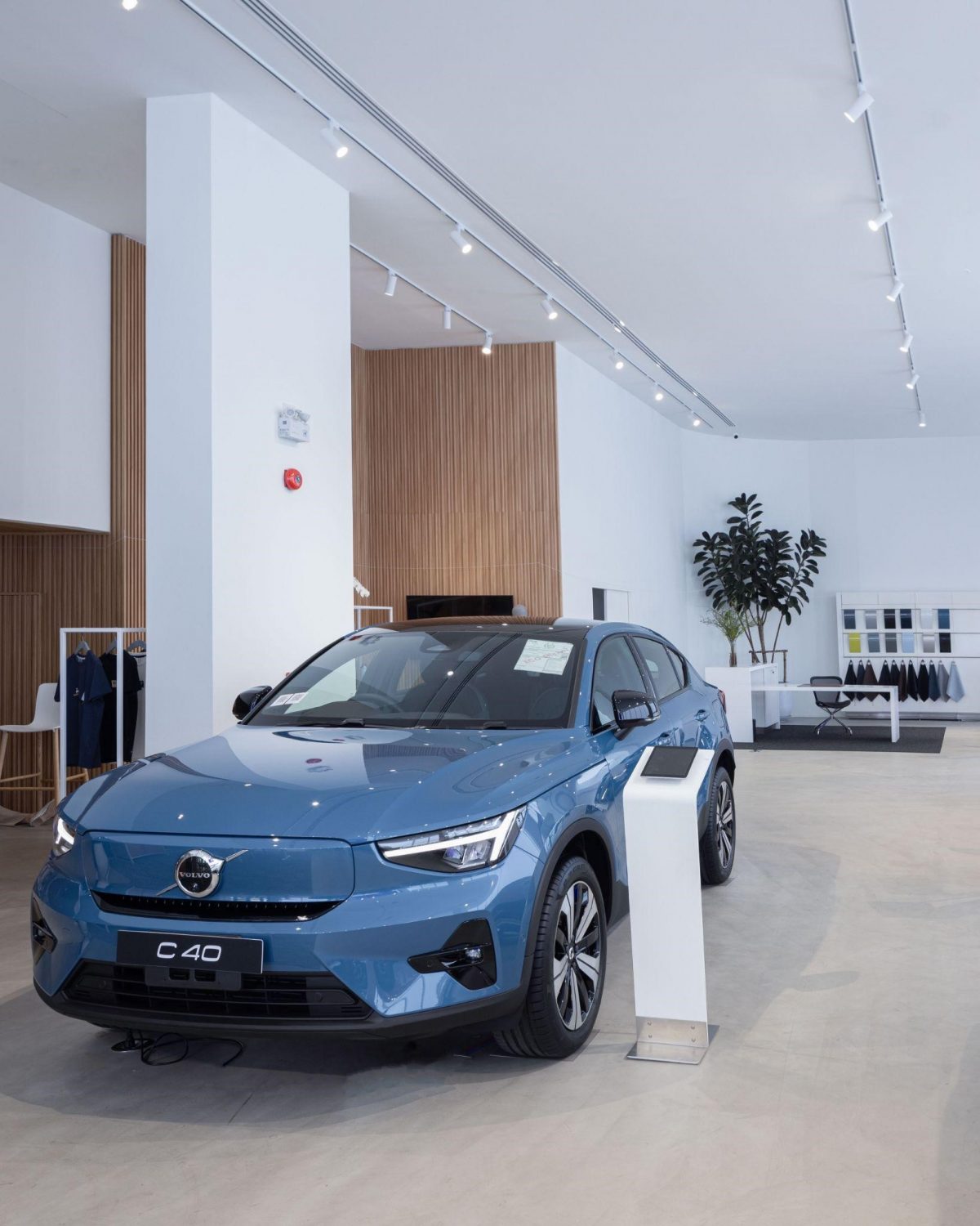 เช่นเดียวกับรถยนต์ของ Volvo ในโชว์รูม ที่ลูกค้าสามารถเลือกวัสดุที่ใส่ใจสิ่งแวดล้อมจากวัสดุรีไซเคิล ดังเช่น รถยนต์ไฟฟ้าที่วางจำหน่ายในโชว์รูมแห่งนี้ สามารถให้ลูกค้าเลือกใช้วัสดุรีไซเคิลและวัสดุหมุนเวียนหลายประเภทสำหรับเบาะที่นั่ง แผงหน้าปัด และประตู ซึ่งมาจากกางเกงยีนส์ ผ้าลินิน และผ้าขนสัตว์ผสมซึ่งไม่ใช้งานแล้วที่มีโพลีเอสเตอร์รีไซเคิลประมาณ 70%
