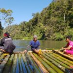 ถือเป็นเส้นชัยของการเดินป่าในครั้งนี้ ตลอดเส้นทางเดินจะเห็นร่องน้ำที่ไหลผ่านตามซอกเขา เห็นลำธารเล็กๆ จนใหญ่ขึ้นกลายเป็นแม่น้ำเงาที่ใสเป็นกระจก เป็นแหล่งรวมอาหารและความอุดมสมบูรณ์ของทุกสรรพสิ่ง เรามาแวะพักที่จุดสิ้นสุดการเดินป่าที่โรงเรียนชื่อ “ล่องแพวิทยา” ซึ่งมีเรื่องเล่าว่า เมื่อสิบกว่าปีที่แล้วยังไม่มีถนนตัดมาถึงหมู่บ้านนี้ ถนนที่ใกล้ที่สุดคือหมู่บ้านอุ้มโล๊ะซึ่งอยู่ห่างจากสบโขงไป 12 กิโลเมตร จะสัญจรได้ก็เฉพาะหน้าแล้งเท่านั้น เวลาที่ครูมาสอนเด็กๆในหมู่บ้านต้องเดินเท้ามาจากหมู่บ้านอุ้มโล๊ะ เวลาสอนเสร็จก็ต่อแพล่องกลับไปตามแม่น้ำเงา ที่จุดนี้เราจึงมีโอกาสได้ลองนั่งแพล่องแก่งไปตามลำน้ำ บอกเลยว่าเป็นประสบการณ์ที่ตื่นเต้นเร้าใจดีจริงๆครับ
