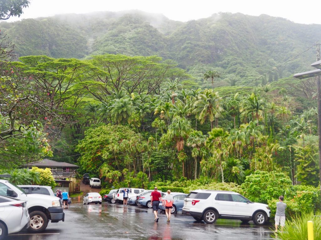 เพียงแค่ 15 นาทีจากโฮโนลูลู เราเดินทางมาถึงป่าฝน Lyon Arboretum แหล่งอนุรักษ์พันธุ์ไม้ของมหาวิทยาลัยฮาวาย เมื่อขับรถขึ้นไปจอดบนเขาแล้ว เราสามารถเดินขึ้นไปเรื่อยๆ ตามเส้นทางเดินป่า ผ่านน้ำตก ชมต้นไม้นานาพันธุ์ ระหว่างทางฝนจะตกลงมาเป็นระยะ พื้นที่เป็นหิน โคลน สลับกับรากไม่ลื่นจนผมล้มก้นกระแทก แต่ความสวยงามระหว่างทางทำให้ไม่ผิดหวังที่ได้มา เสียดายที่ลงภาพทั้งหมดไม่ได้